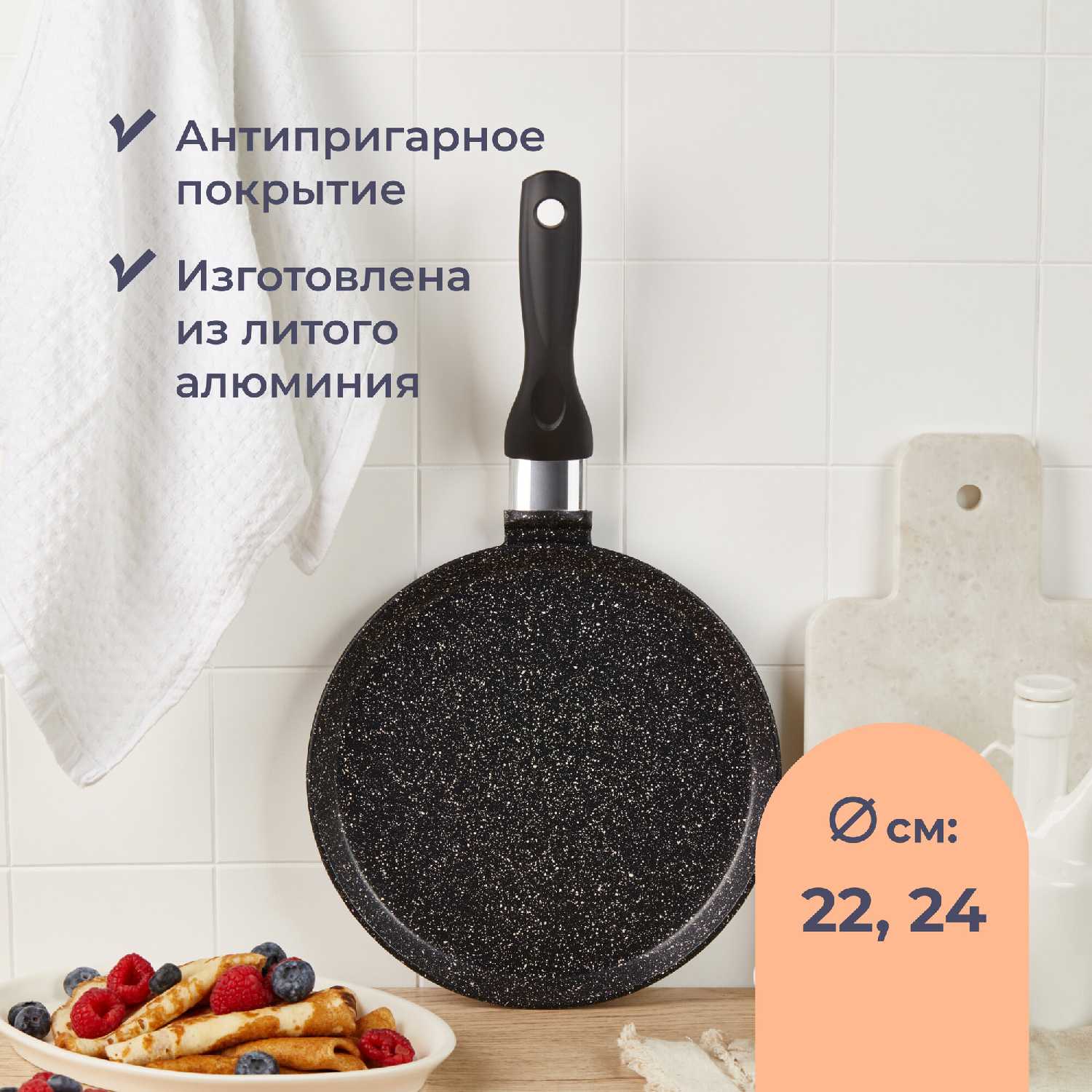 Диаметр влияет на размер блинов и на соответствие конфорке плиты. Большинство отзывов не указывают точный размер, но есть замечание, что слишком большое дно (вероятно, 24-28 см) может не полностью прогреваться на маленькой конфорке, оставляя края блинов сырыми и затрудняя переворачивание. Важно выбирать размер, соответствующий вашей плите. -