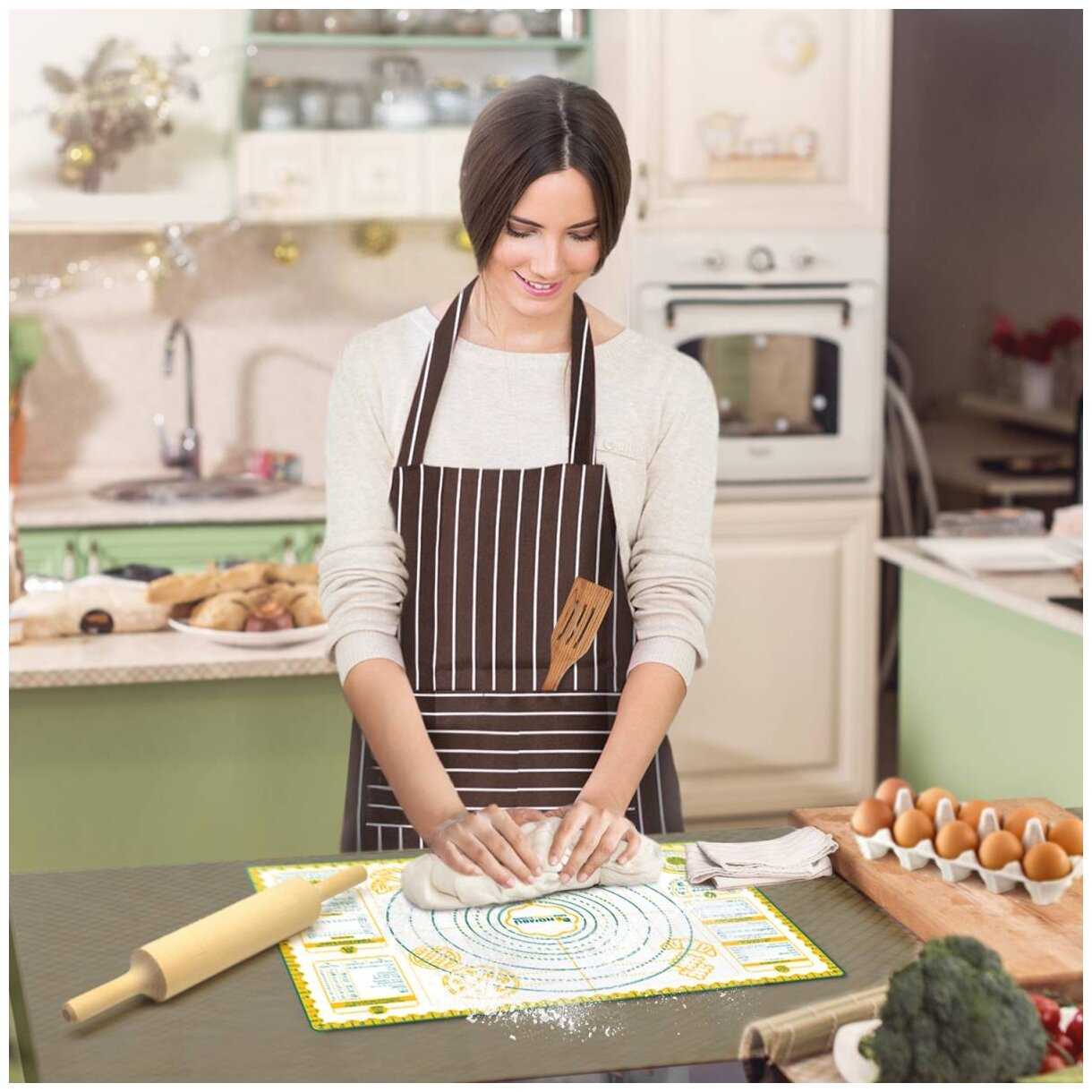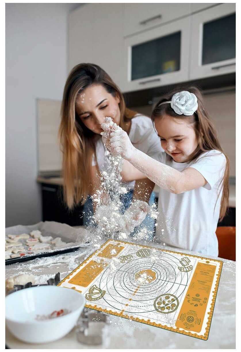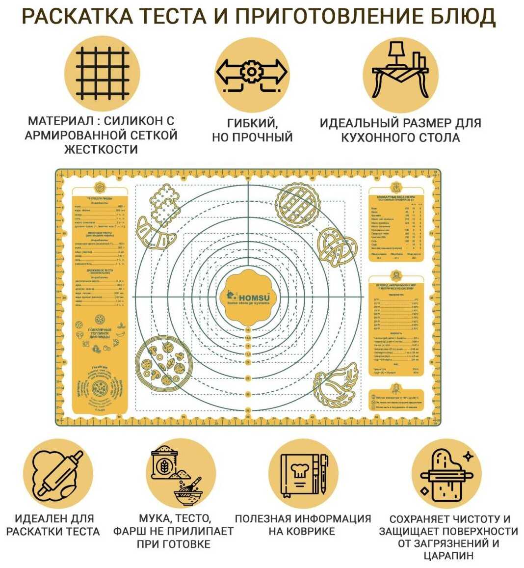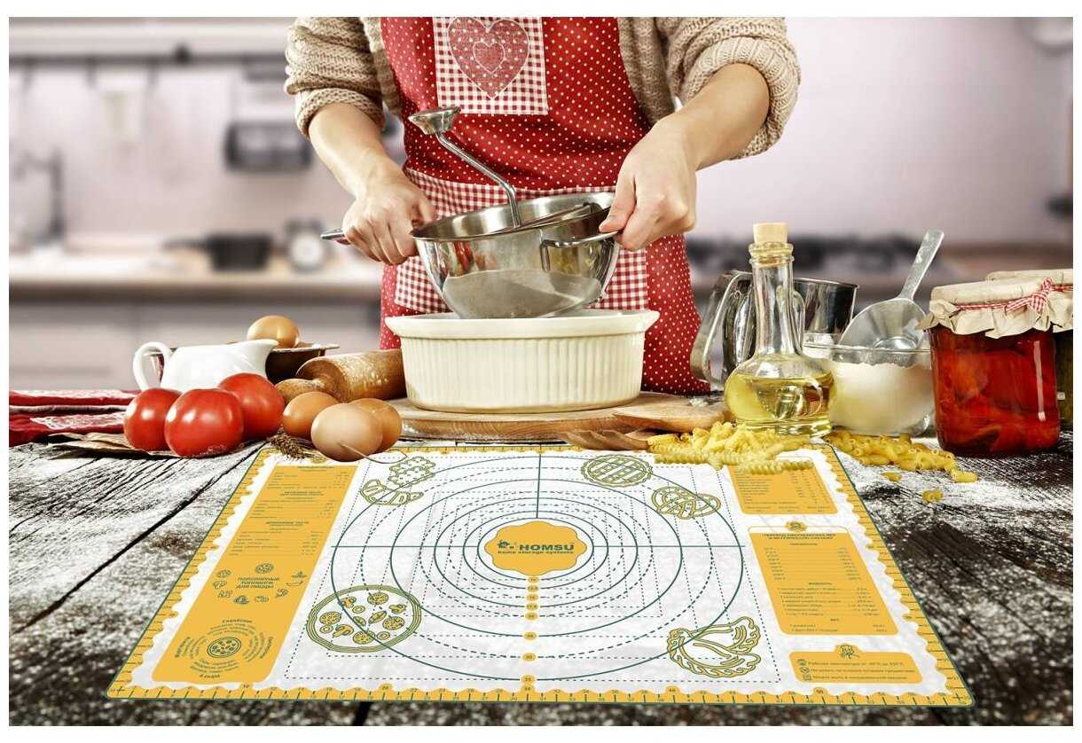 - + Не скользит на столе, тесто не прилипает, отличный размер 60/40.