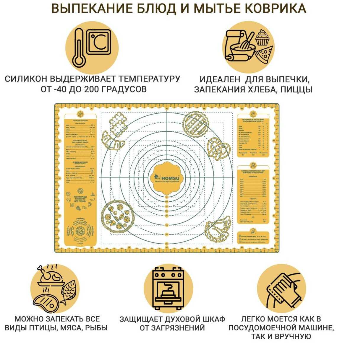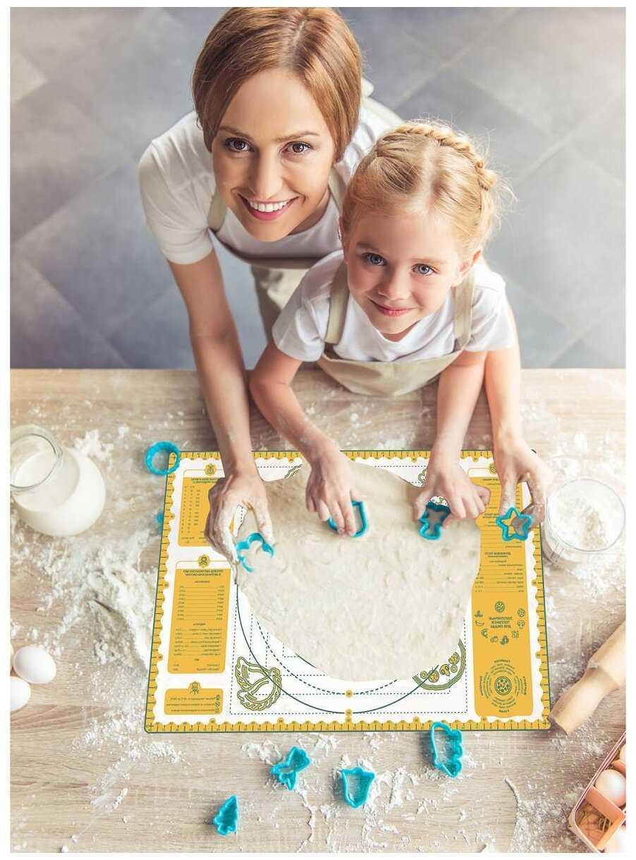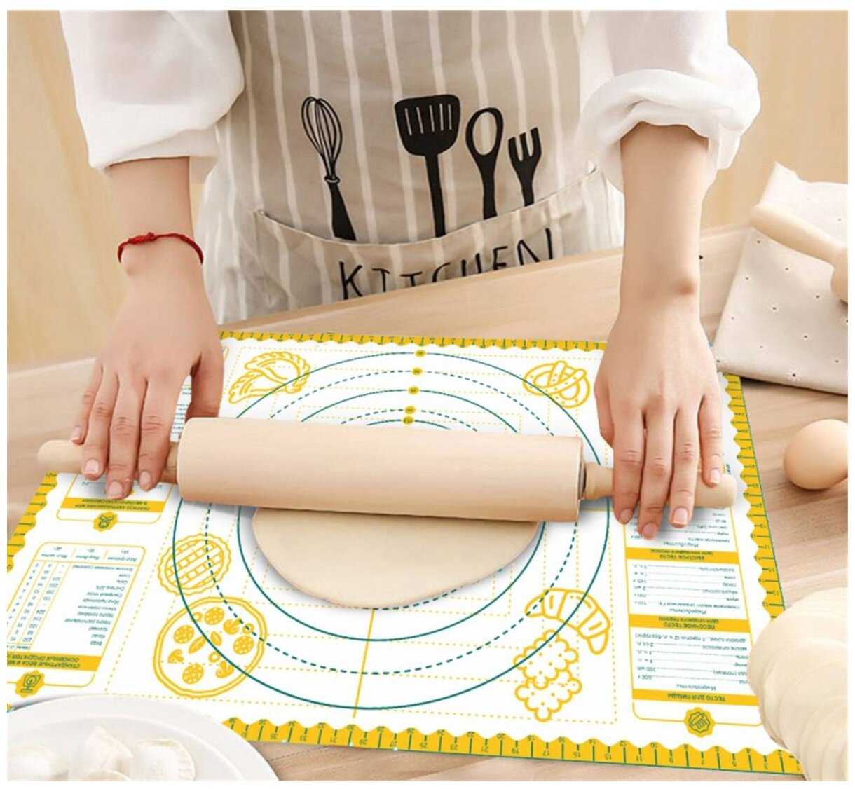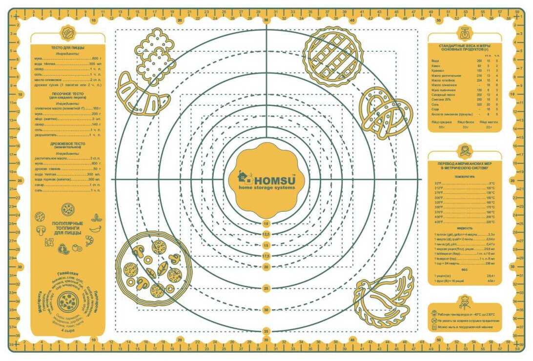 - + Не скользит на столе, тесто не прилипает, отличный размер 60/40.