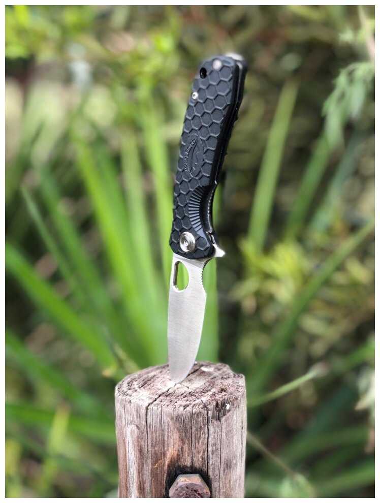 Малый вес, цепкая рукоять (текстура сот), не дорогая, но хорошая сталь на каждый день (не порошок, для хранения на полке, а обычный трудяга).