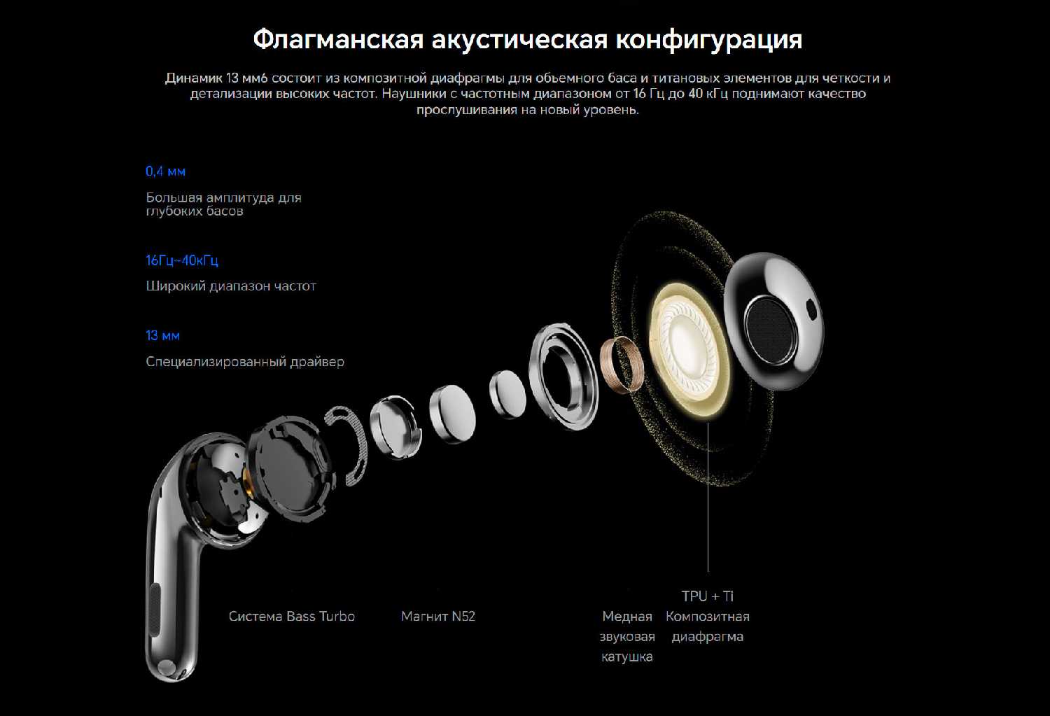 - Чистый звук с возможностью кастомизации через эквалайзер: