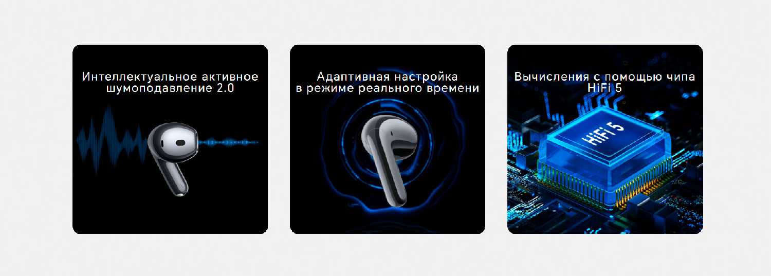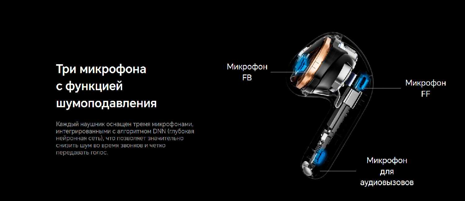 - Три микрофона в каждом наушнике улучшают изоляцию голоса во время звонков.