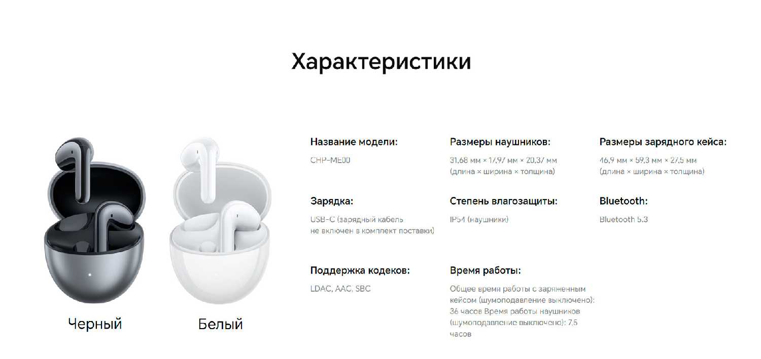 При отключенном ANC автономность составляет до 7 часов непрерывного воспроизведения, а кейс обеспечивает 2–3 полных подзарядки. В режиме шумоподавления время работы сокращается на 15–20%. Зарядка кейса — через Type-C (кабель не входит в комплект). -