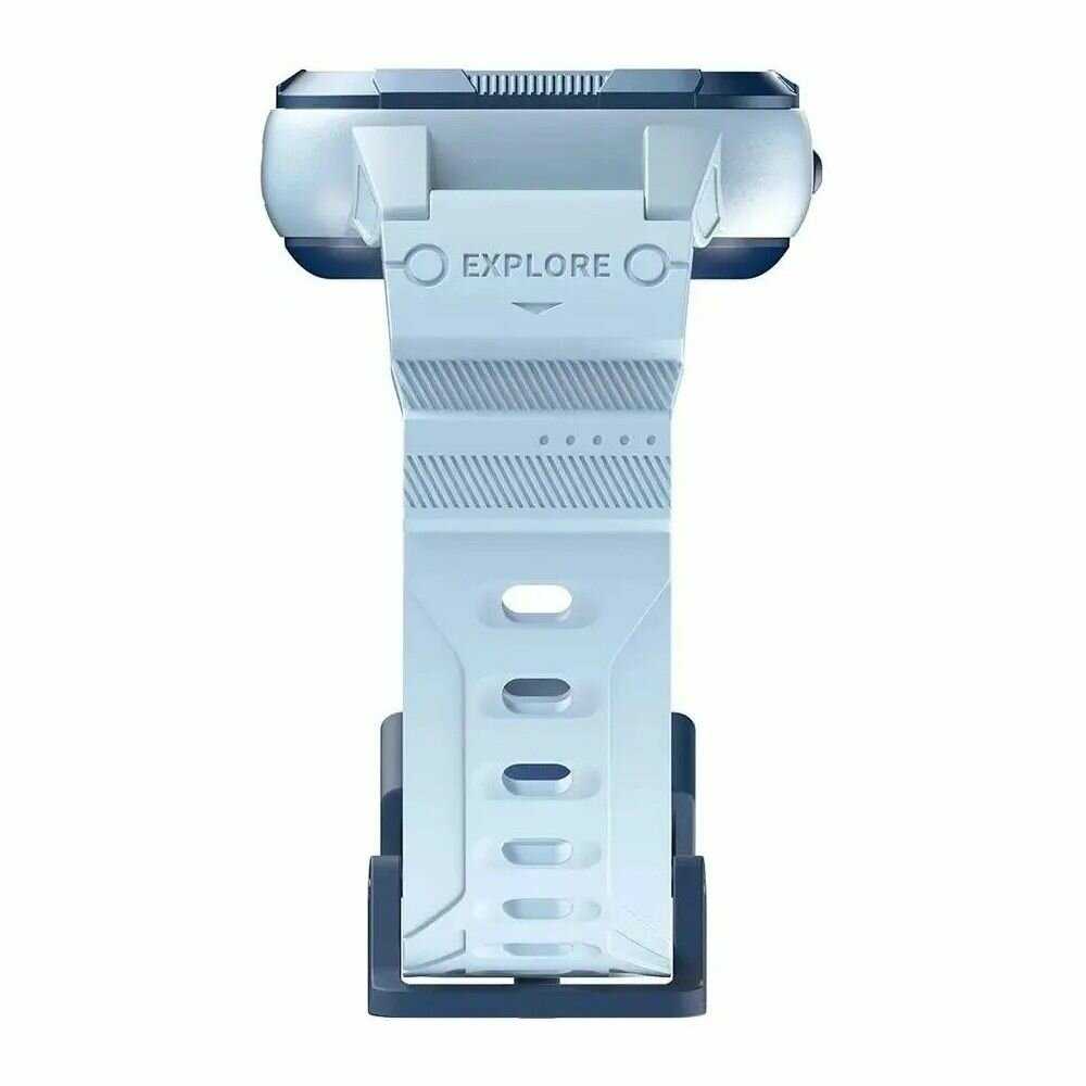 - Литой корпус из ударостойкого пластика выдерживает падения, а силиконовый ремешок не натирает кожу.