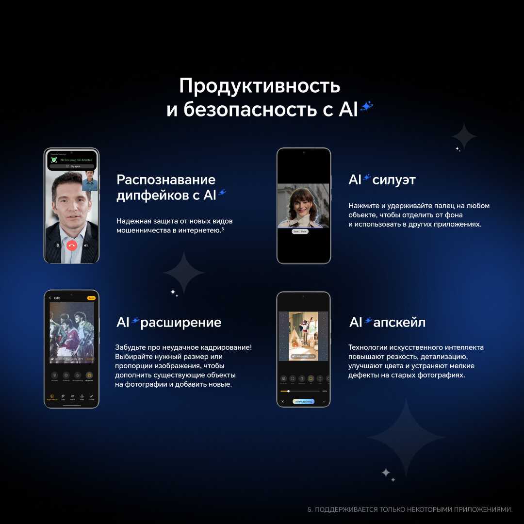 - AI-функции камеры (автоулучшение снимков, распознавание сцен) работают без задержек благодаря нейропроцессору.
