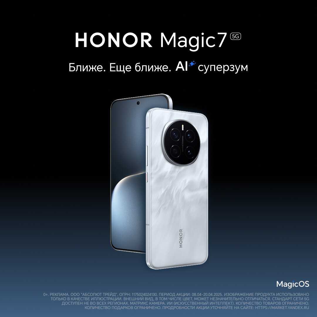- + • HONOR Magic7 256 ГБ — новинка этого года, брал(а) для личного использования, выглядит современно и надёжно.