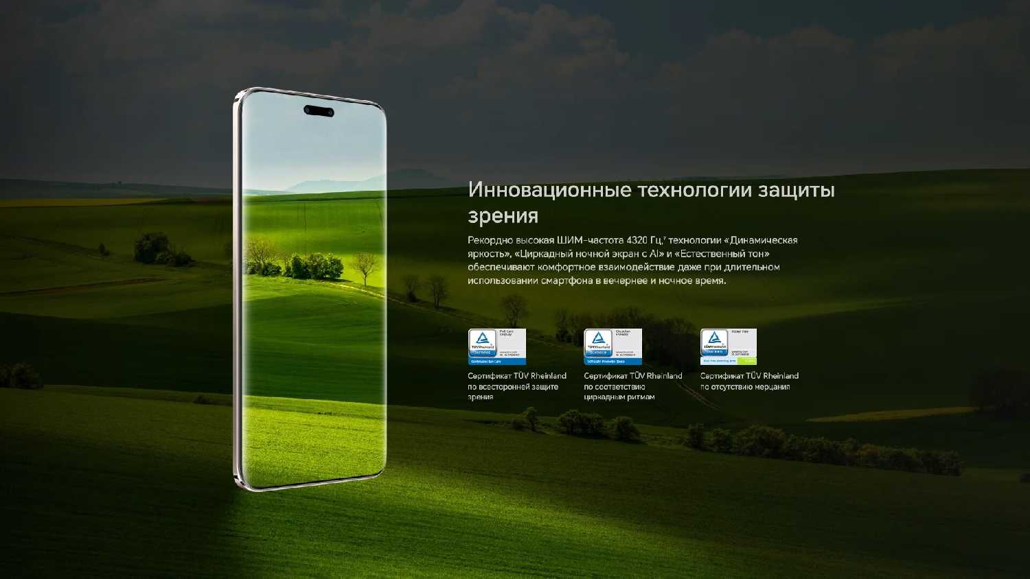Сильно скругленные края обеспечивают эргономичный хват, но провоцируют случайные касания ладонью при наборе текста. Яркость 5000 нит гарантирует читаемость на прямом солнце, а технология LTPO с PWM ниже 5 Гц снижает утомляемость глаз. Пользователи с близорукостью отмечают комфорт при длительном чтении. -