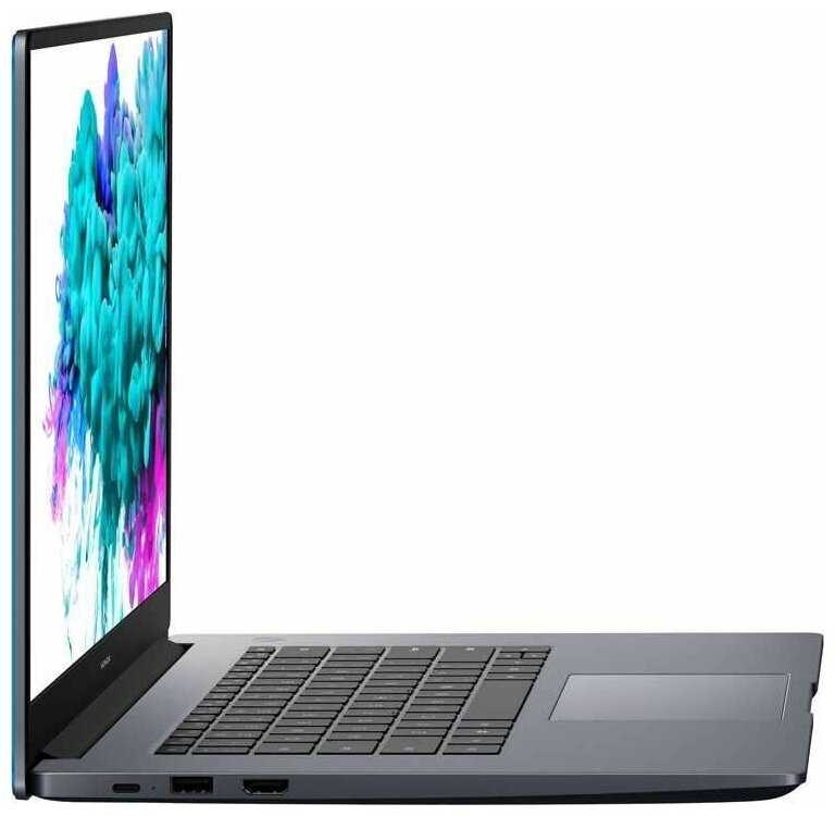 С первого взгляда, Honor MagicBook 15 впечатляет своим алюминиевым корпусом, который придает устройству премиальный вид. У него тонкий и легкий дизайн, что делает его идеальным для мобильного использования. В закрытом состоянии ноутбук имеет толщину всего 16.9 мм и весит около 1.5 кг, что удобно для переноски в рюкзаке или сумке.