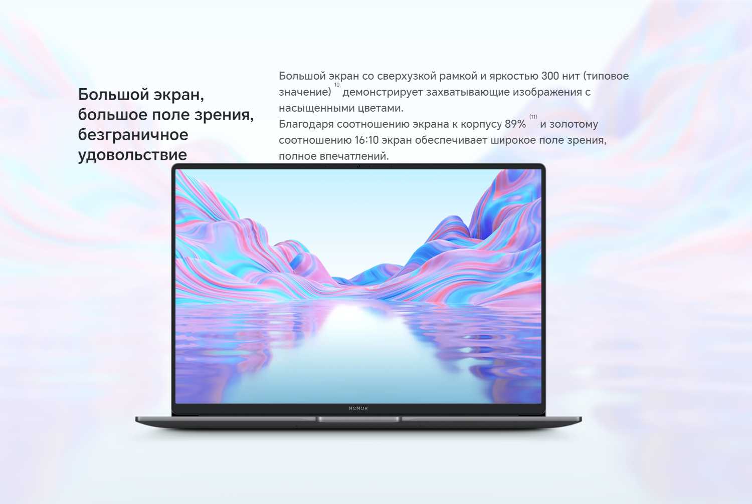 - Соотношение сторон 16:10 увеличивает полезную площадь для работы с текстами и таблицами.