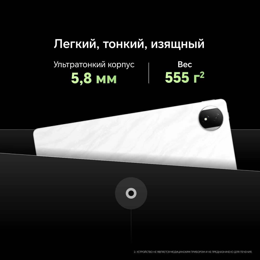 При толщине 6.7 мм и весе около 660 г планшет легко помещается в рюкзак, но для удержания одной рукой во время чтения или видео звонков он великоват. Пользователи советуют использовать чехол-подставку для стационарного размещения. -