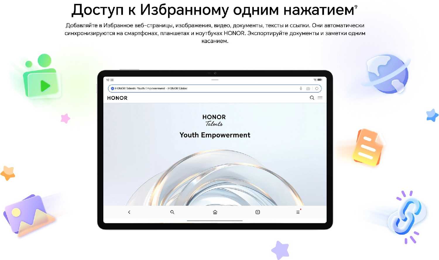Лёгкий (около 500 г) и тонкий алюминиевый корпус удобен для переноски, а поддержка клавиатур и стилуса позволяет работать с документами. Однако острые грани и скользкая поверхность требуют использования чехла. Автономности хватает на 8–10 часов активного использования, а производительности достаточно для Excel, PowerPoint и лёгкого монтажа. Функция Honor Connect для синхронизации со смартфоном в России недоступна. -