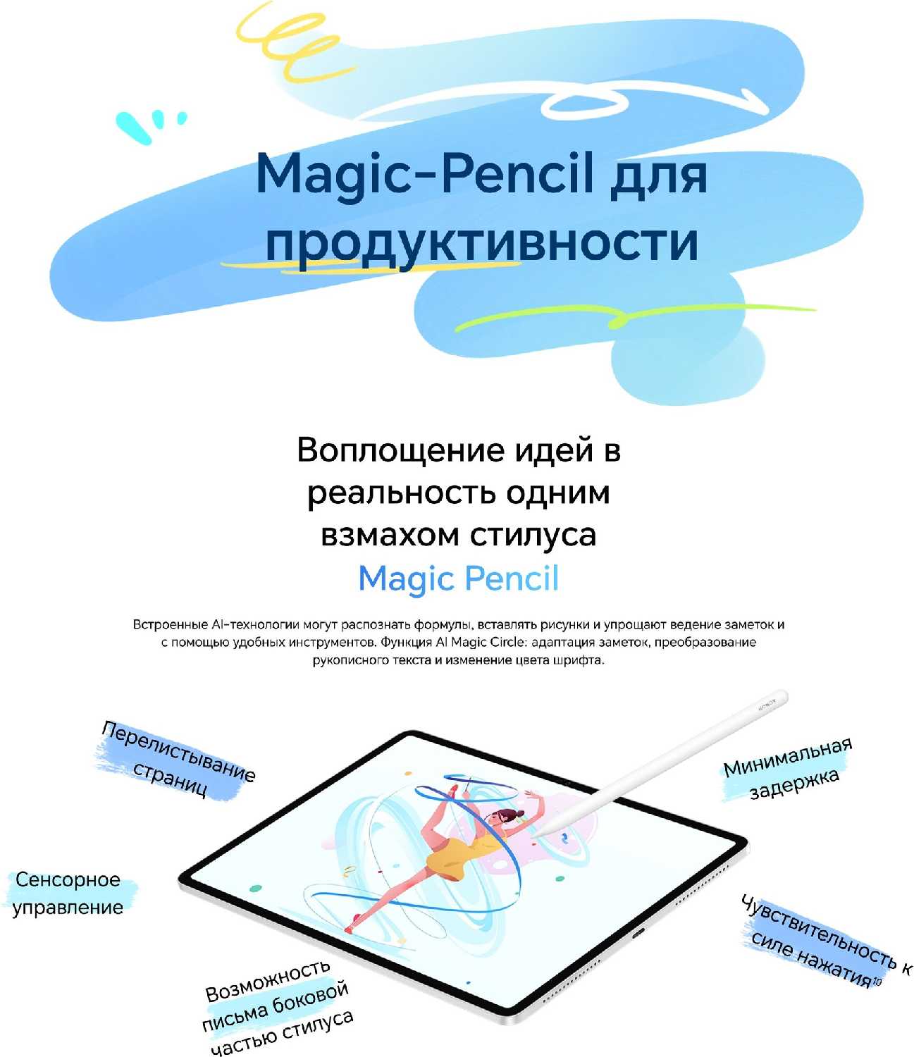 - Поддержка стилуса Magic-Pencil 3 — удобно для рисования и работы