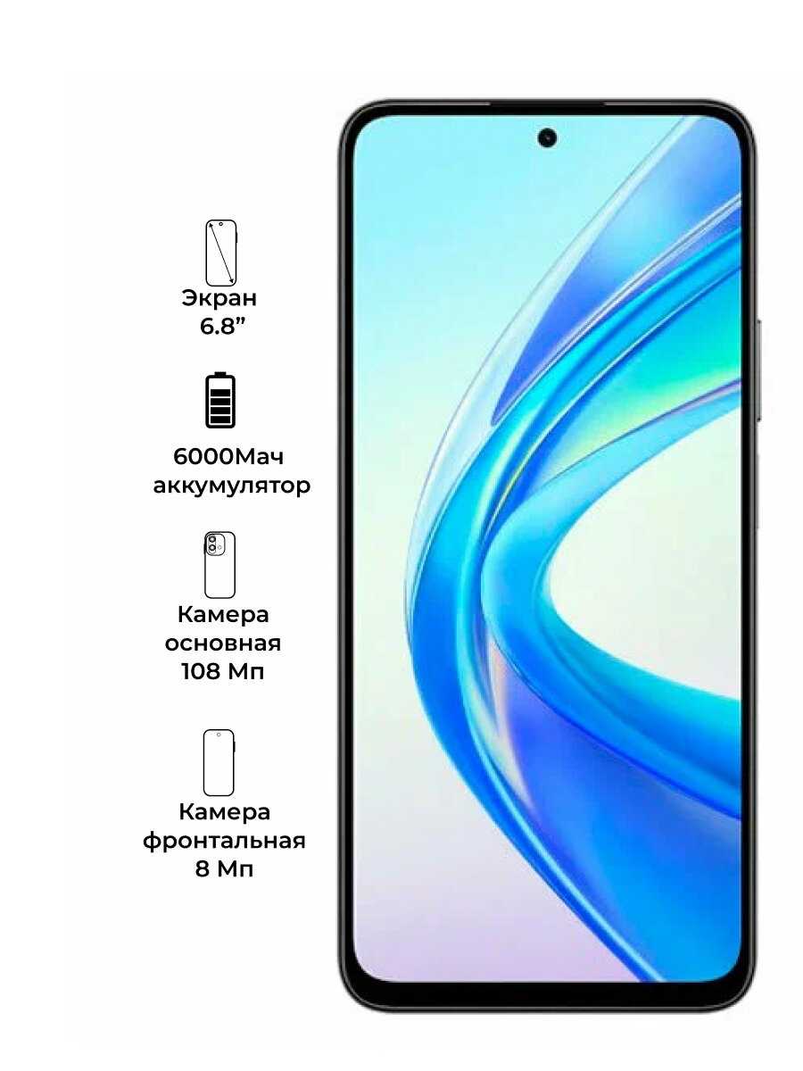 - + Смартфон Honor X7b в черном цвете с памятью 8/128 Гб полностью соответствует описанию производителя. В данной модели есть бесконтактная оплата, датчики распознования лица и пальца.Большой, яркий и насыщенный цветами экран 6,8". Большой и надежный аккамулятор на 6000 мАч. Звук хорошего качества, чистый. Осноаные камеры 108+5+2 Мп, фронтальная 8 Мп. За счет мощного процессора телефон с хорошей производительностью, быстрый.