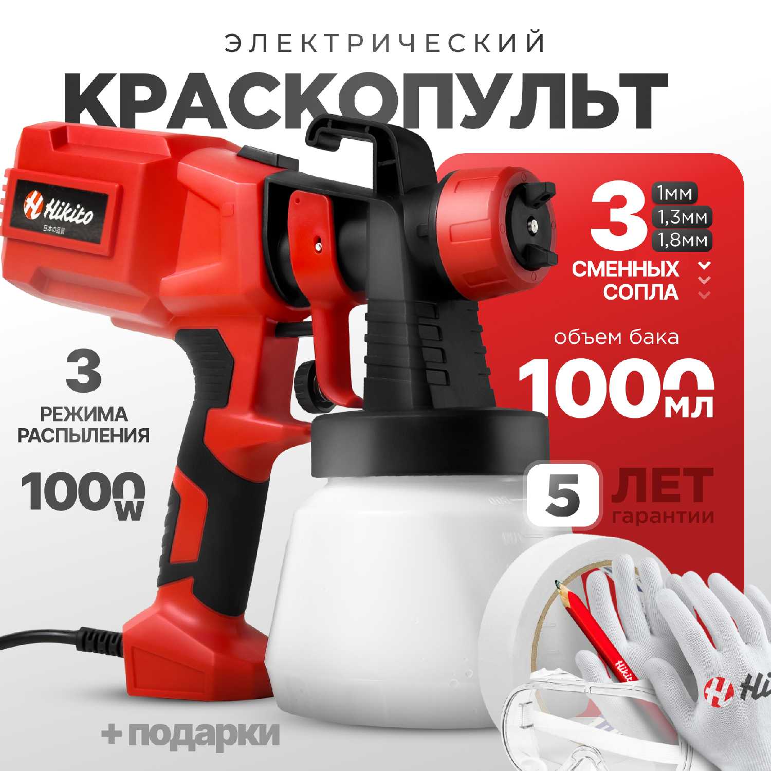 Комплектация : | Краскопульт, коробка, емкость на 1000 мл, воронка, насадки 1 мм, 1, 3 мм, 8 мм строительные перчатки, строительные очки, строительный карандаш, малярная лента, кисточка для подкраски |