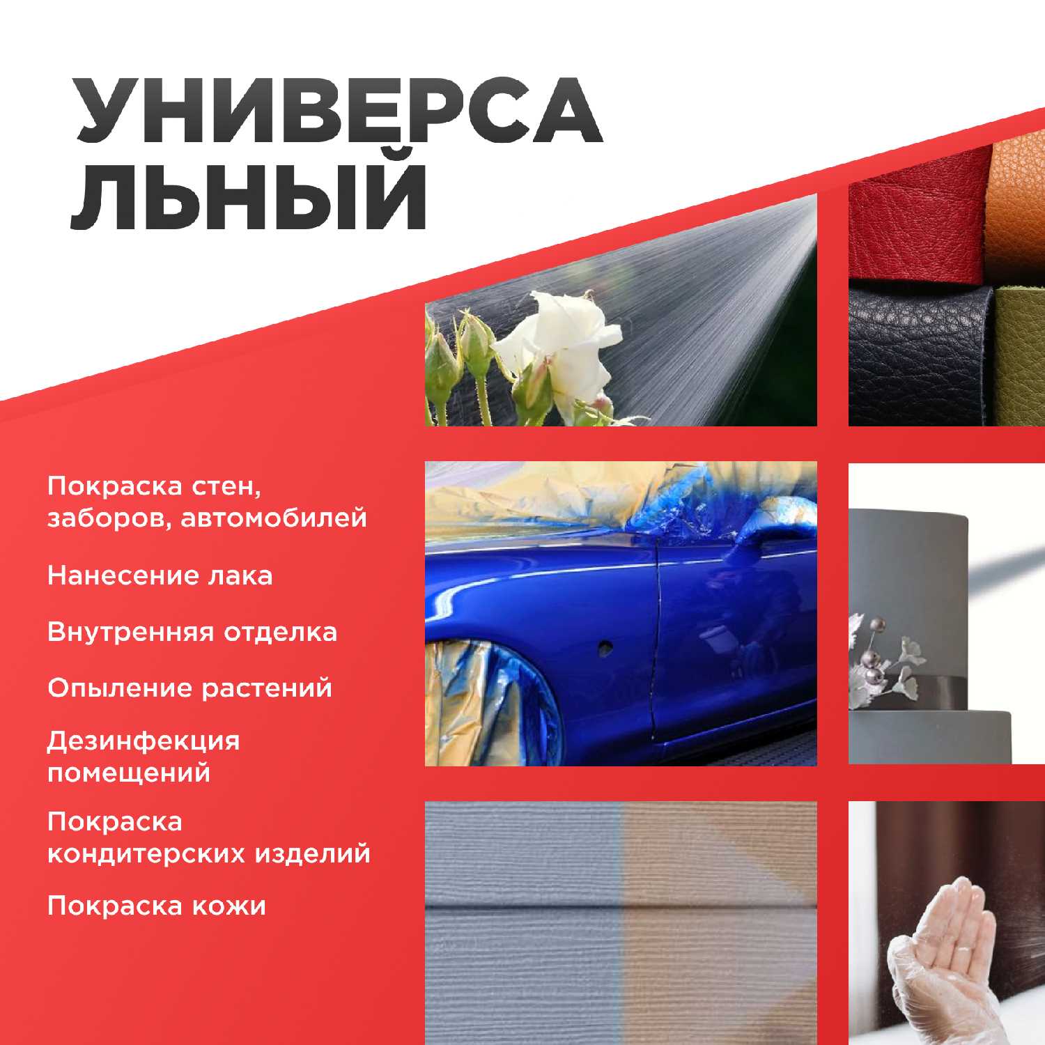 Область применения : | лакировка мебели, опрыскивание растений, покраска гаражных ворот, покраска стен |