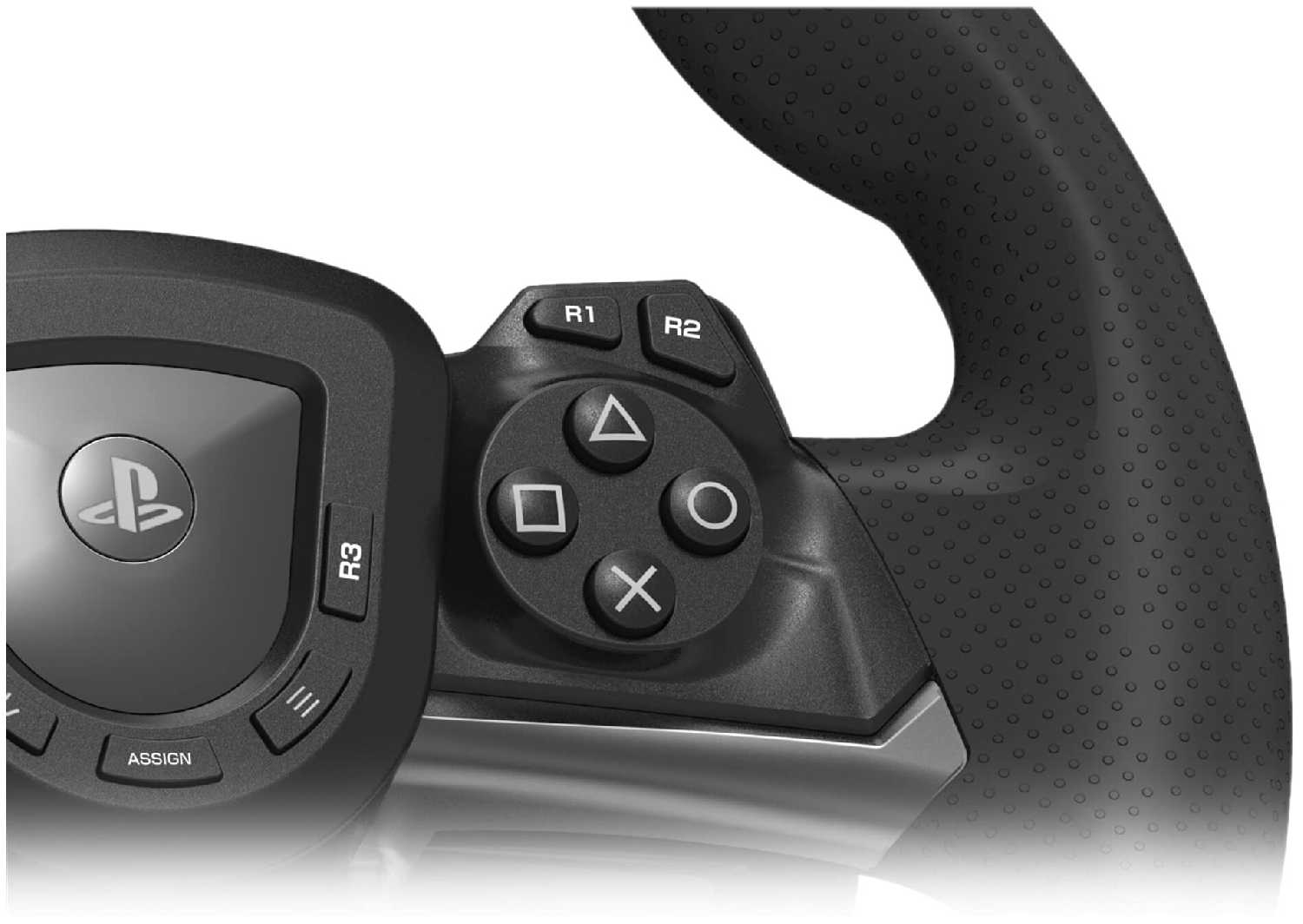 Кнопки продублированы по схеме геймпада PS4, но L2/R2 расположены так, что их легко задеть ладонью при активном рулении. Программируемые клавиши на ободе позволяют настроить управление под себя, хотя процесс требует времени. -