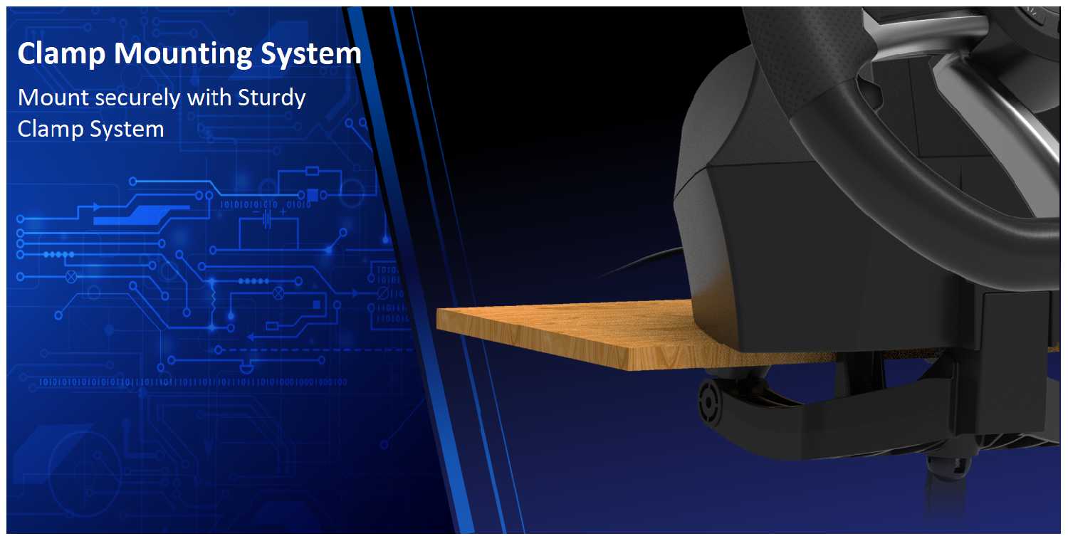 Руль выполнен из матового пластика с прорезиненными зонами хвата, но при активном использовании может появиться скрип. Крепление к столу осуществляется струбциной или присосками (в комплекте), но при агрессивном вращении есть риск смещения. Отдельные пользователи сообщали о люфте рулевой оси после нескольких месяцев эксплуатации.