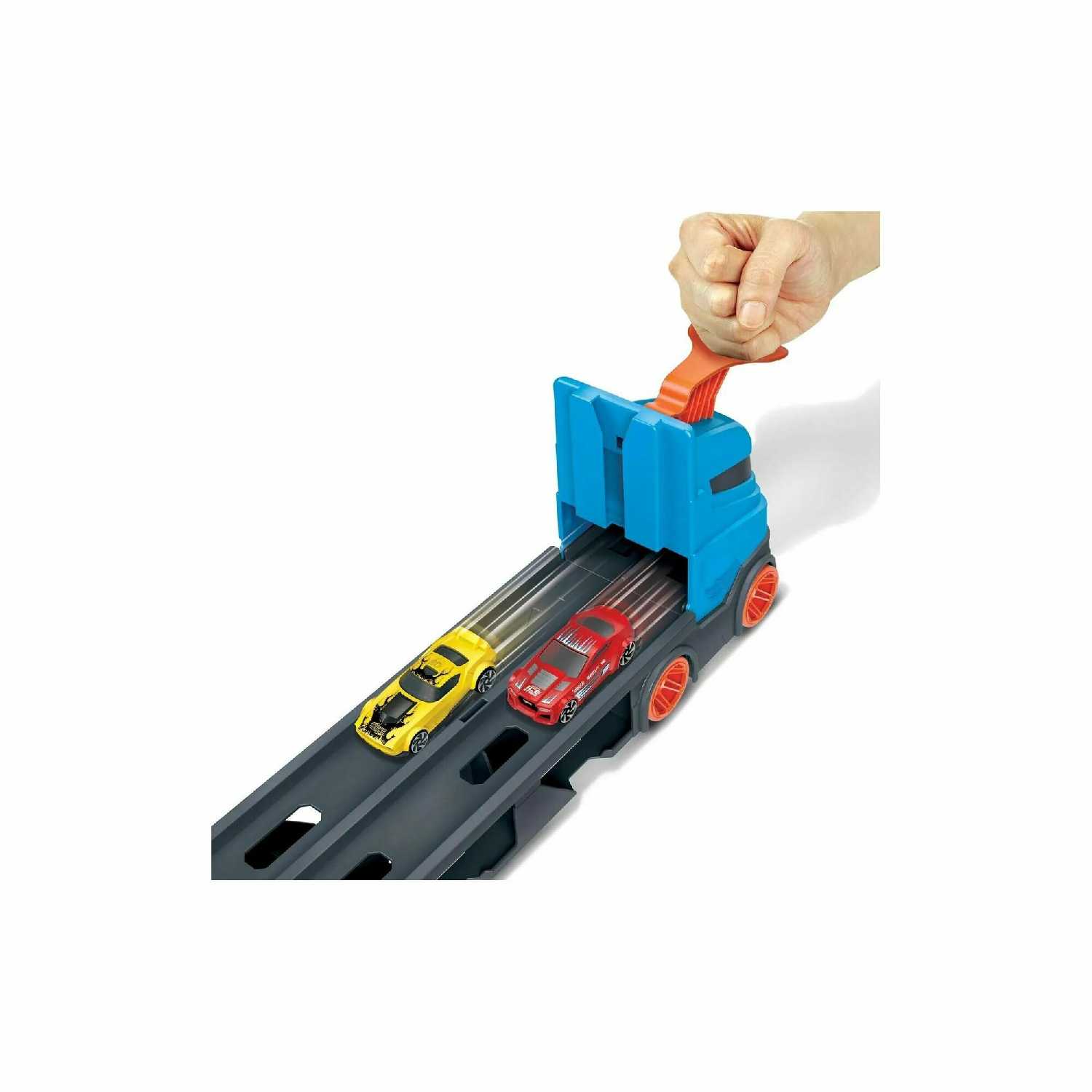 Да, многие дети играют с ним как с обычным грузовиком: катают, загружают машинки в гараж или расставляют их на крыше. В отзывах подчёркивают, что не обязательно каждый раз разворачивать трек — ребёнок сам выбирает режим. Прочность колёсной базы позволяет передвигать автовоз по полу, хотя их размер ограничивает проходимость на коврах. -