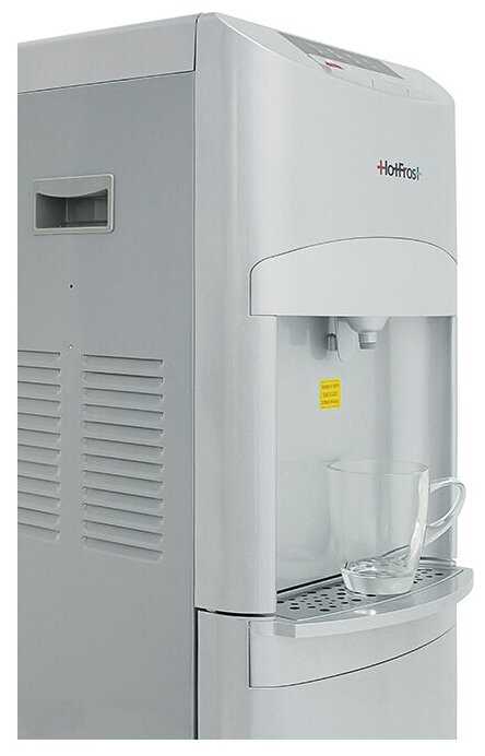- + Бутыль не нужно поднимать, удобно ставить внизу. Сверху удобно ставить стаканы или чашки. Тихий, Удобный...