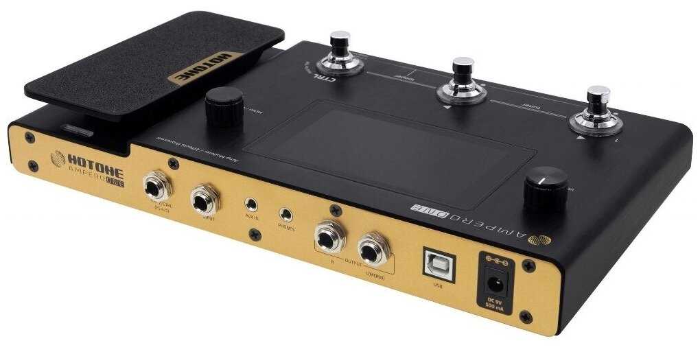 - + Куча настроек, педалей, голов и кабинетов, можно получить какое вам угодно звучание для вашего баса или электрогитары. Есть драм-машина с различными пресетами и возможностью настройки количества ударов в минуту (ритма). Есть педаль, которая может работать как педаль громкости, либо регулировать один из ЛЮБЫХ параметров настраиваемых модулей (педалей, например). Также есть возможность подключить отдельный футсвич, который добавит кнопок для контроля всего этого дела ногами, либо ещё одну экспрешн-педаль в довесок к уже имеющейся. Желательно приобретать родные, хотоновские, что и планирую в будущем сделать. Отдельного упоминания заслуживает хотоновская софтина, которая помогает в удобном графическом интерфейсе все расставлять и настраивать, это гораздо удобнее маленького сенсорного экрана на самом процессоре