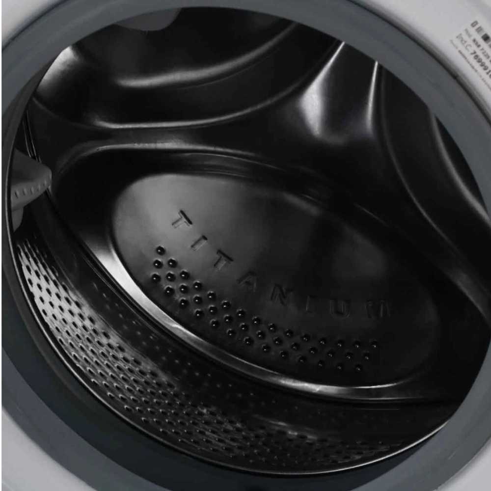 Барабан гладкий, не цепляет, не оставляет зацепок или заломов на одежде, деликатные ткани не портит. Загрузка 7 кг подходит для семьи, помещает одеяла, подушки. Крышка люка крепкая, без зазоров. -