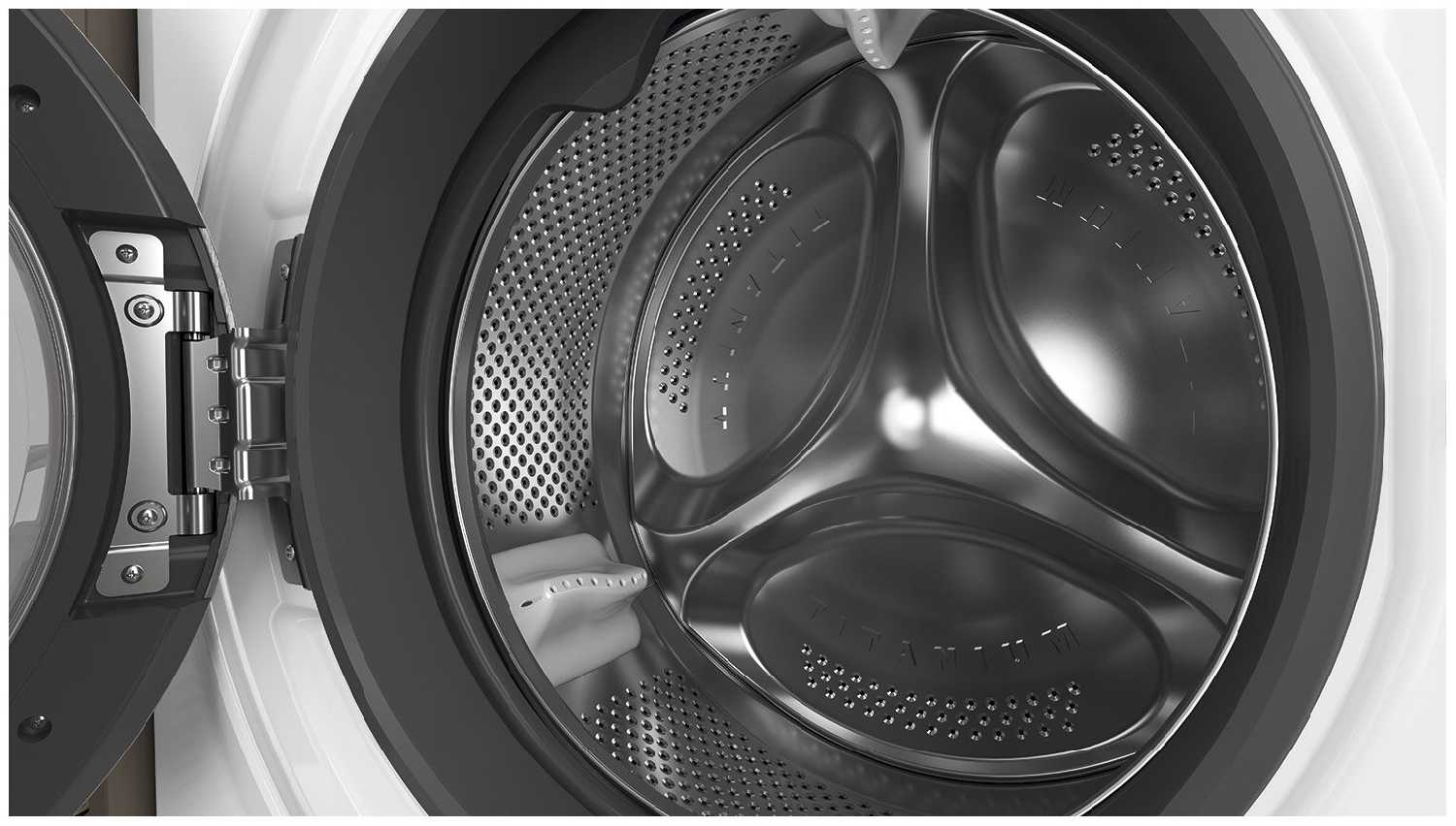 - Система очистки барабана помогает поддерживать внутреннюю чистоту машинки, предотвращая накопление загрязнений и запахов, что продлевает срок службы устройства.