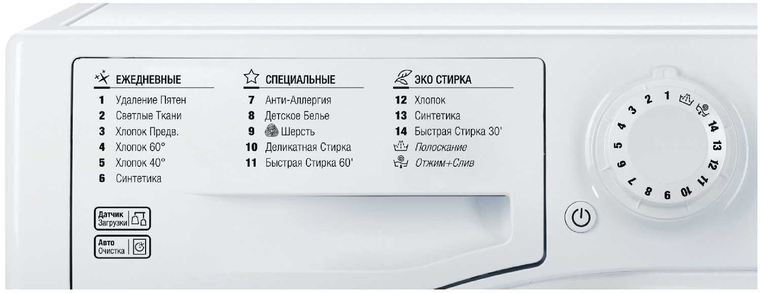 экономичная программа, дополнительное полоскание, быстрая стирка, стирка детских вещей, стирка синтетики, отмена отжима, стирка деликатных тканей, стирка шелка, стирка шерсти, предварительная стирка, удаление пятен, отжим, полоскание, гипоаллергенная стирка