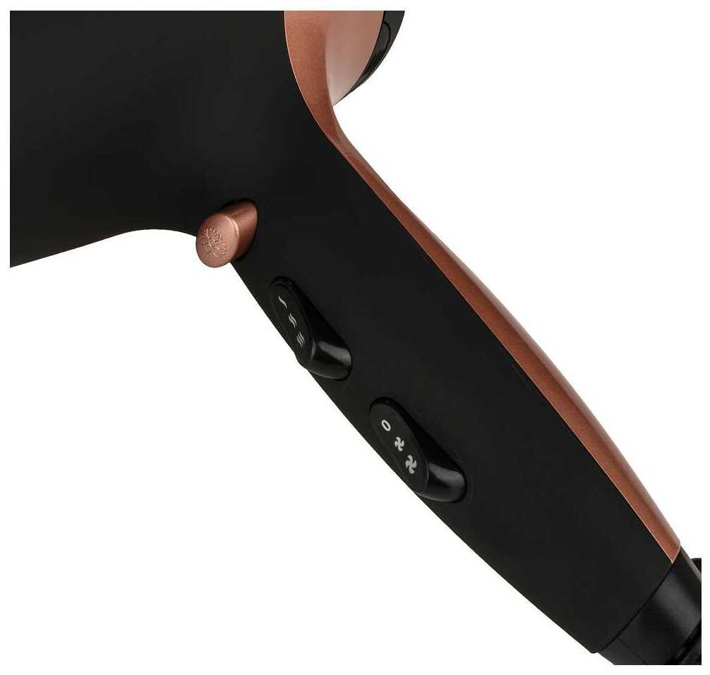 - + Функциональный фен мощностью 2200 Вт рассчитан на создание укладки салонного уровня в домашних условиях. Он поддерживает две скорости и три режима температуры, для выбора оптимальной комбинации настроек.