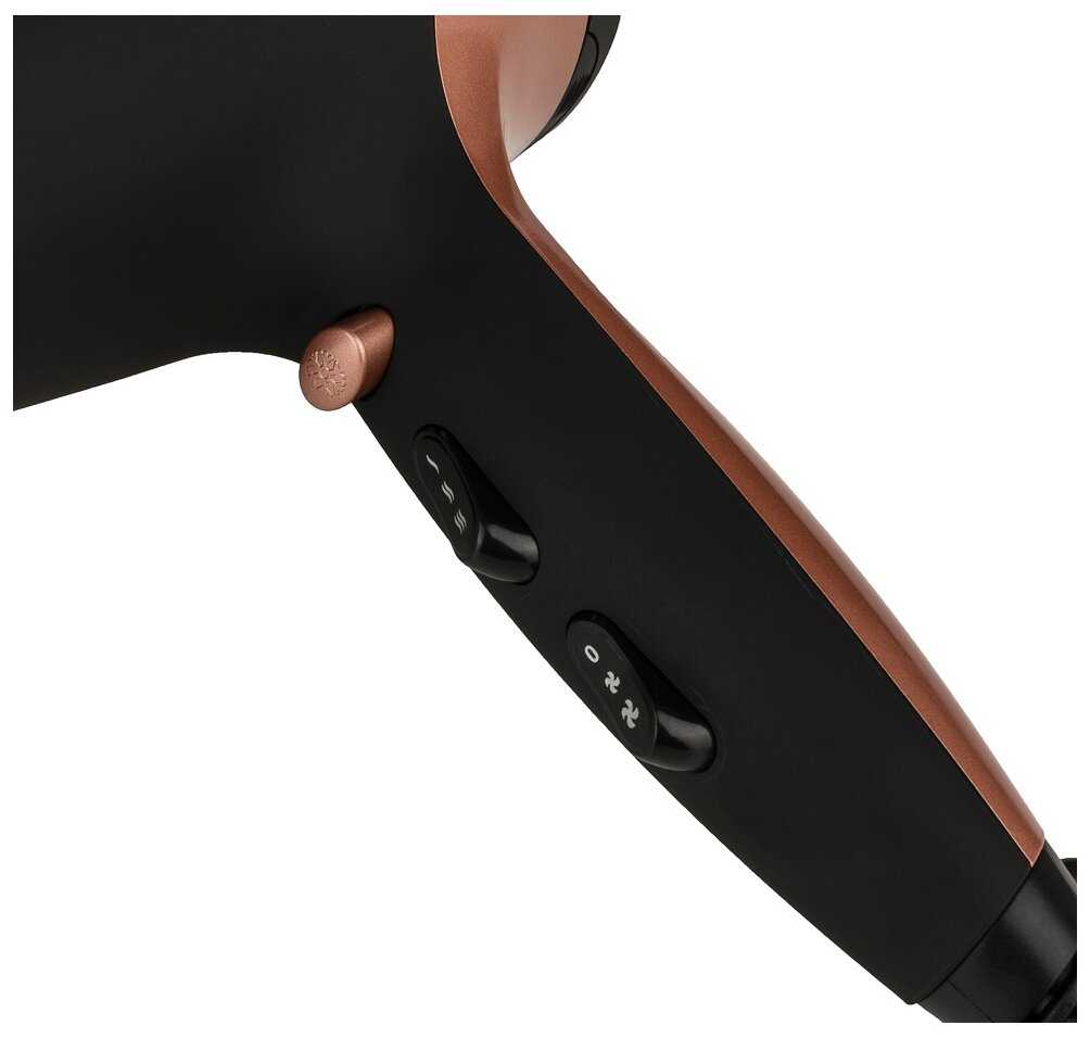 - + Новый фен произвел очень приятное впечатление, и интенсивность воздушного потока можно настраивать, и температуру воздуха, и даже на холодный воздух переключаться.