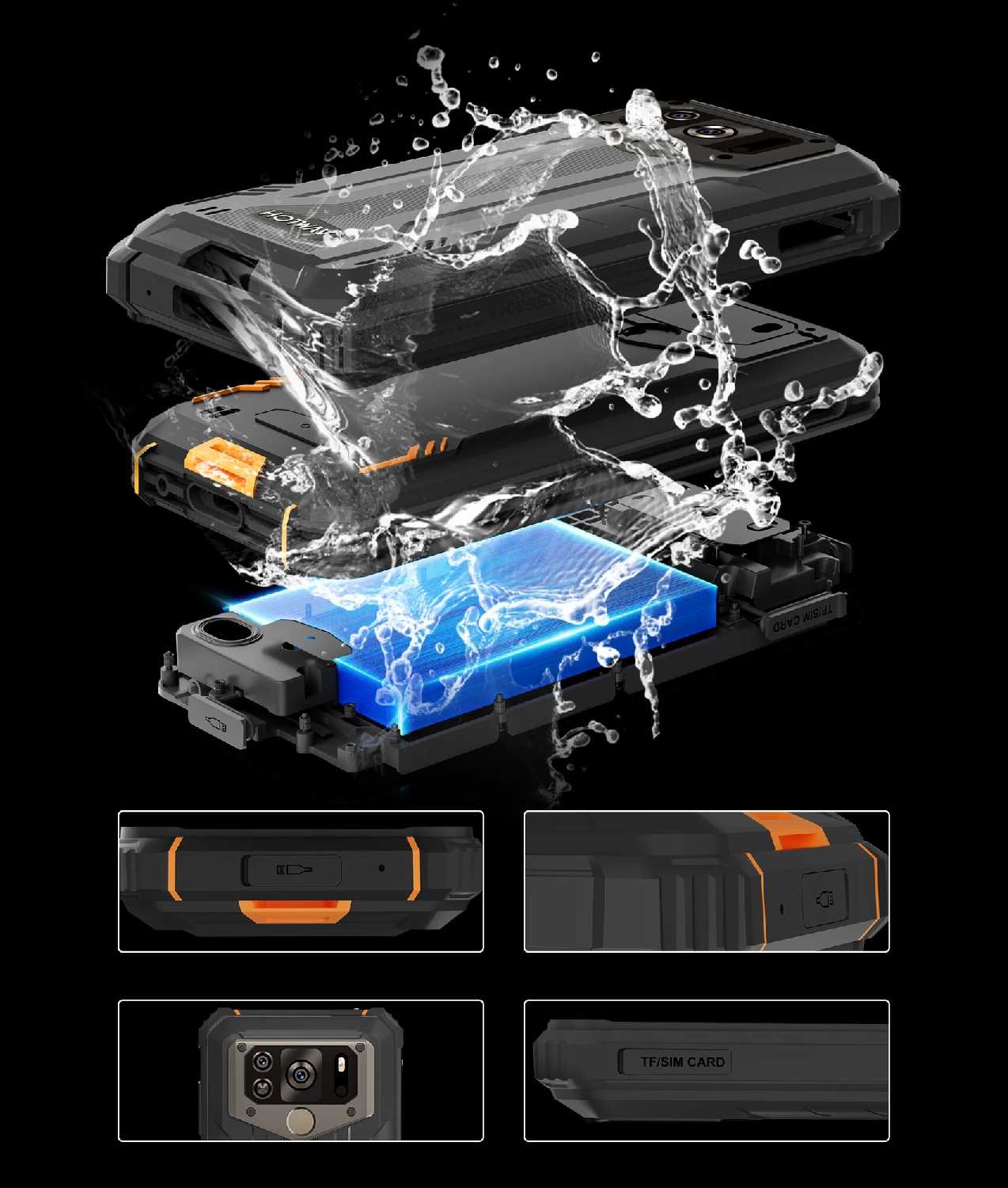 ударопрочный корпус, FM-радио, фонарик, датчик приближения, гироскоп, компас, датчик освещенности, акселерометр