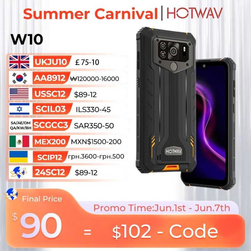 Смартфон Хотвав В10. Специальная скрепка для извлечения SIM-лотка. Оригинальное сетевое зарядное устройство для быстрой зарядки. Соединительный кабель micro-USB (Type-C 2.0). OTG-переходник. Инструкция на русском языке для Hotwav W10. Подарочная коробка. Гарантийный талон.