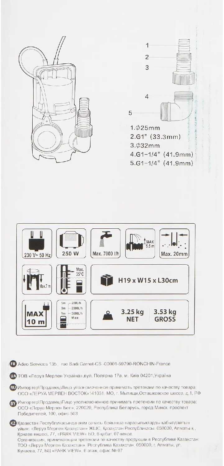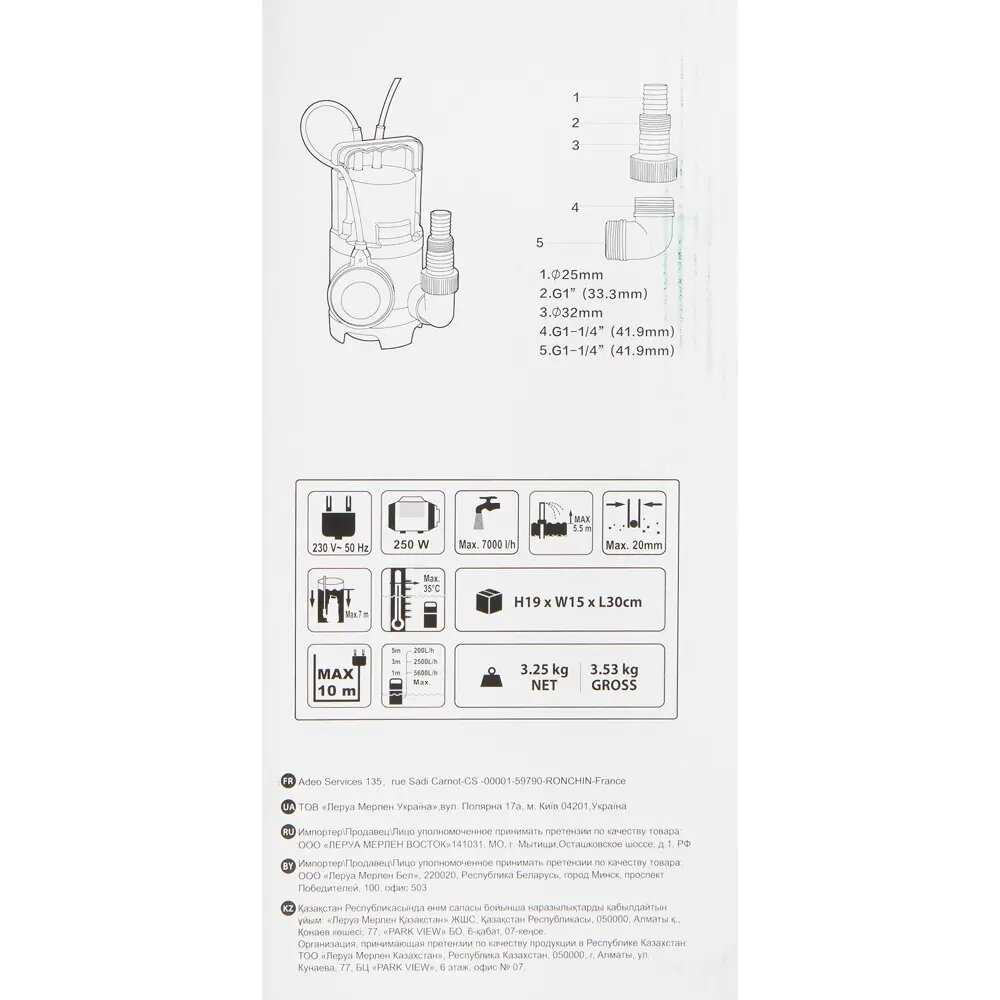 Подробная комплектация : | Насос погружной дренажный 7000 л/час для грязной воды.1 шт. |
