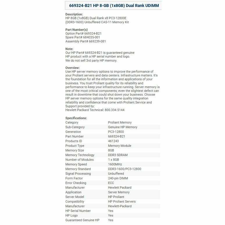 Дополнительная информация : | оперативная память HP для сервера и СХД 669324-B21, 669239-081, 684035-001 |