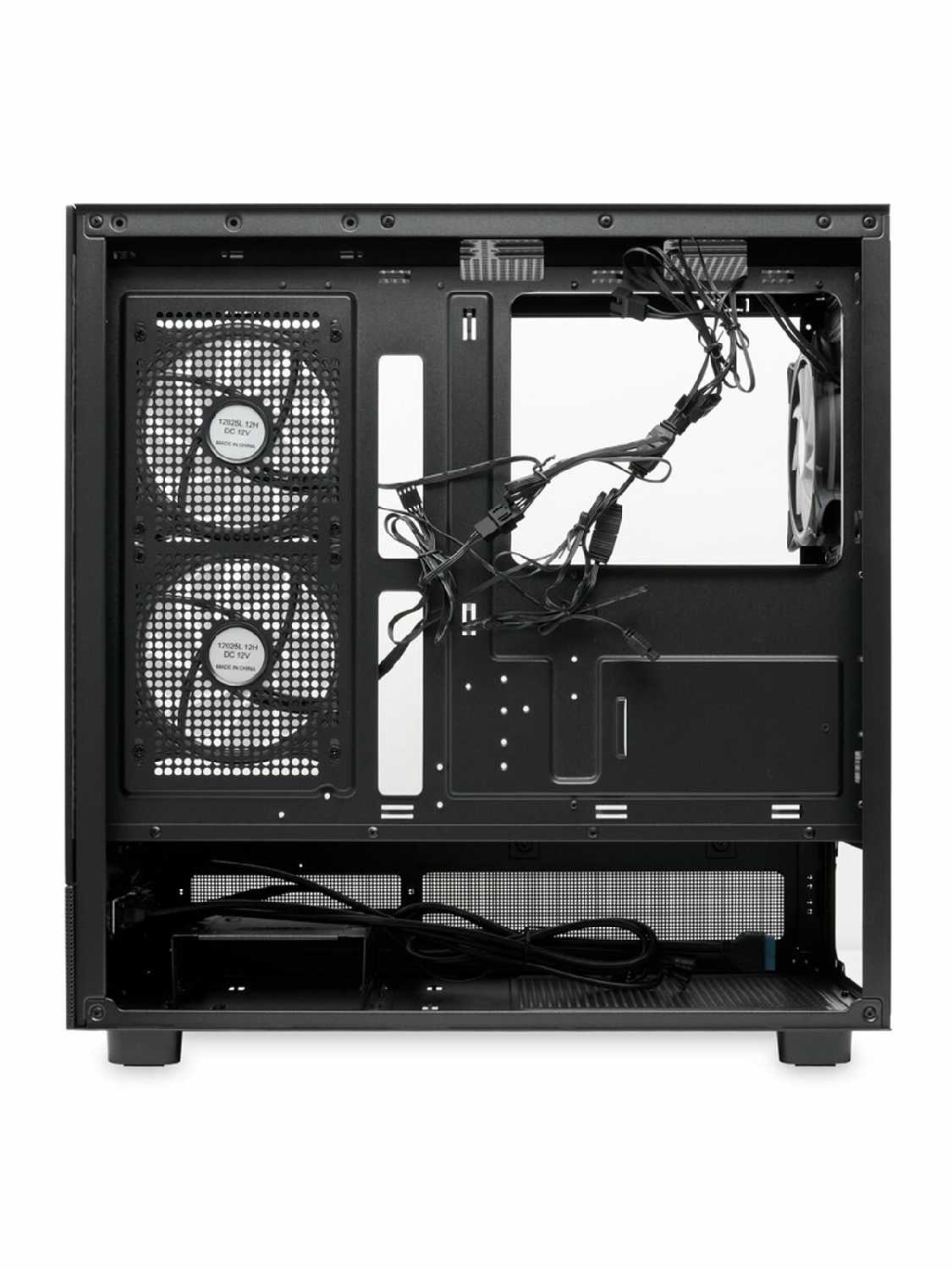 - + Цена, вместительность, продуваемость, наличие 3 встроенных вентиляторов ARGB, достаточно хороший металл, удобство сборки, субъективно смотрится дорого.