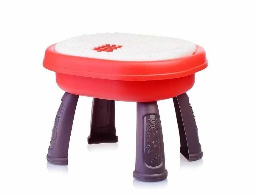 - + отличный столик!уже больше полугода радует ребенка.сперва играли только с музыкальной частью.сейчас играем с водичкой песочком.скоро дорастем и до конструктора