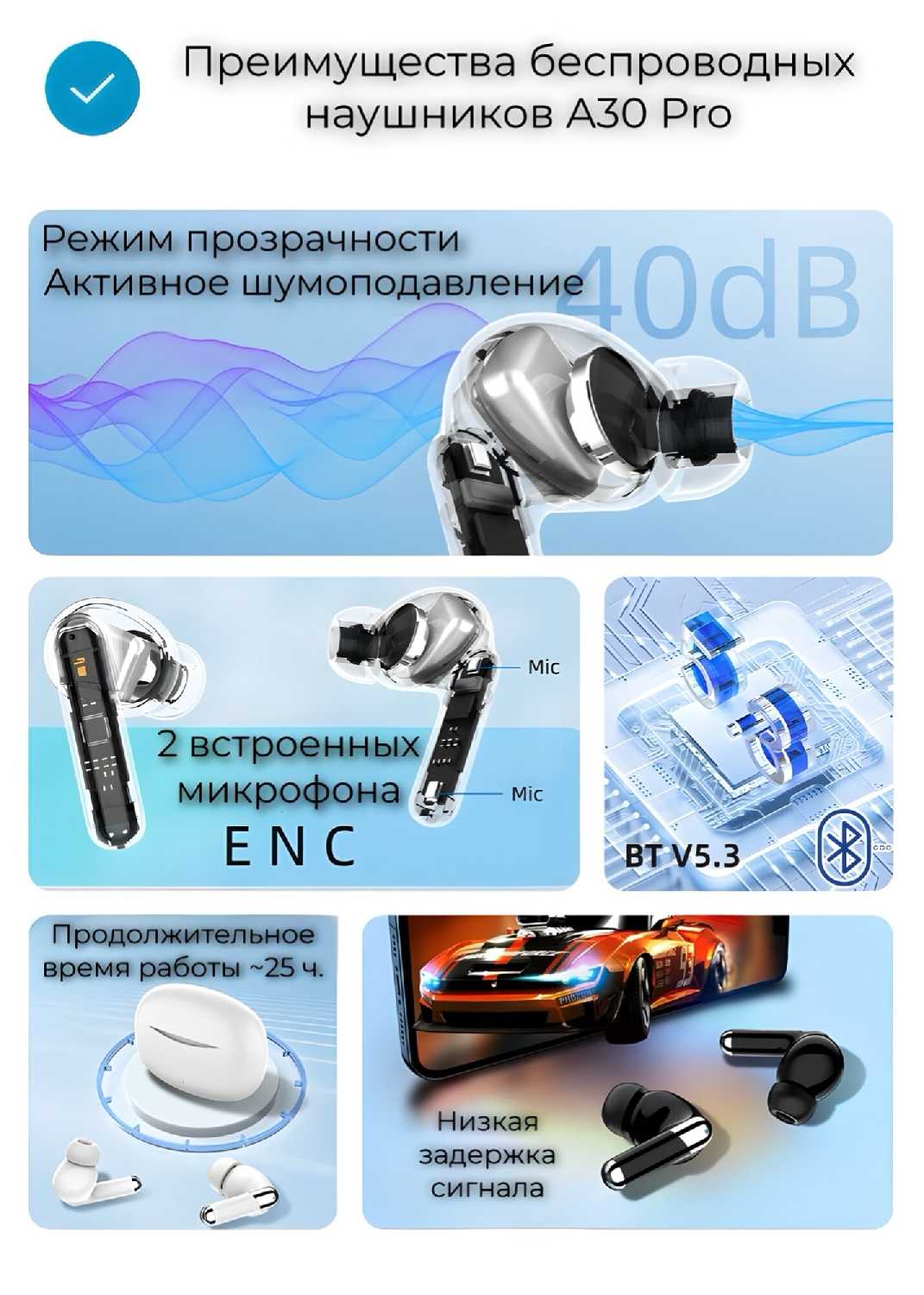 | Дополнительная информация : | Активное шумоподавление ANC+ENC, сенсорное управление, Hi-Fi звучание, влагозащита |