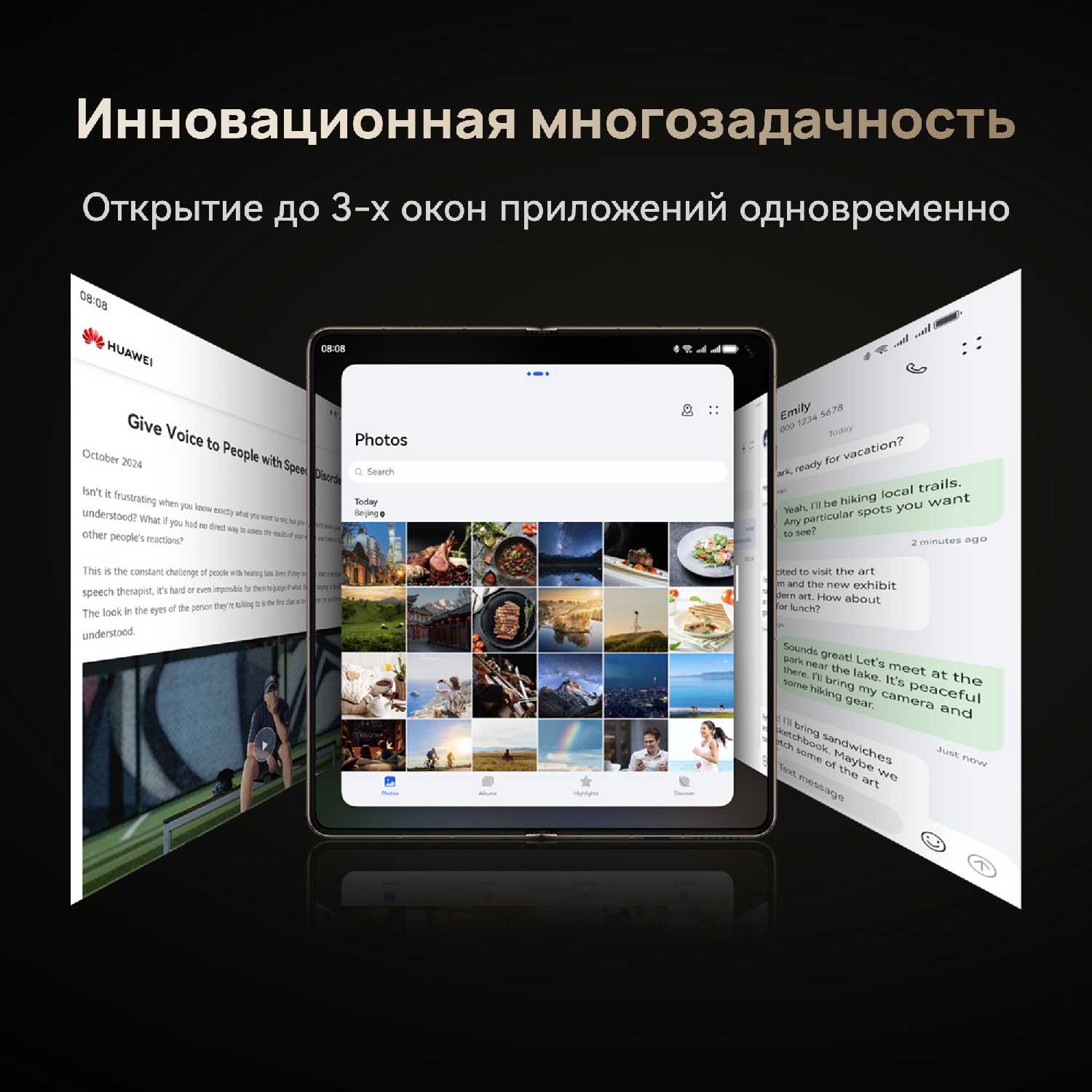 Пользователи отмечают, что одновременная работа трёх приложений на большом экране реализована безупречно: например, можно параллельно вести переписку в мессенджере, редактировать документ и просматривать контент без переключений. Оперативная память 12 ГБ обеспечивает мгновенную обработку данных даже при активной фоновой нагрузке, а процессор Kirin 9020 полностью исключает лаги. Эта функция особенно ценна для работы с таблицами, презентациями или совмещения развлечений и задач. -