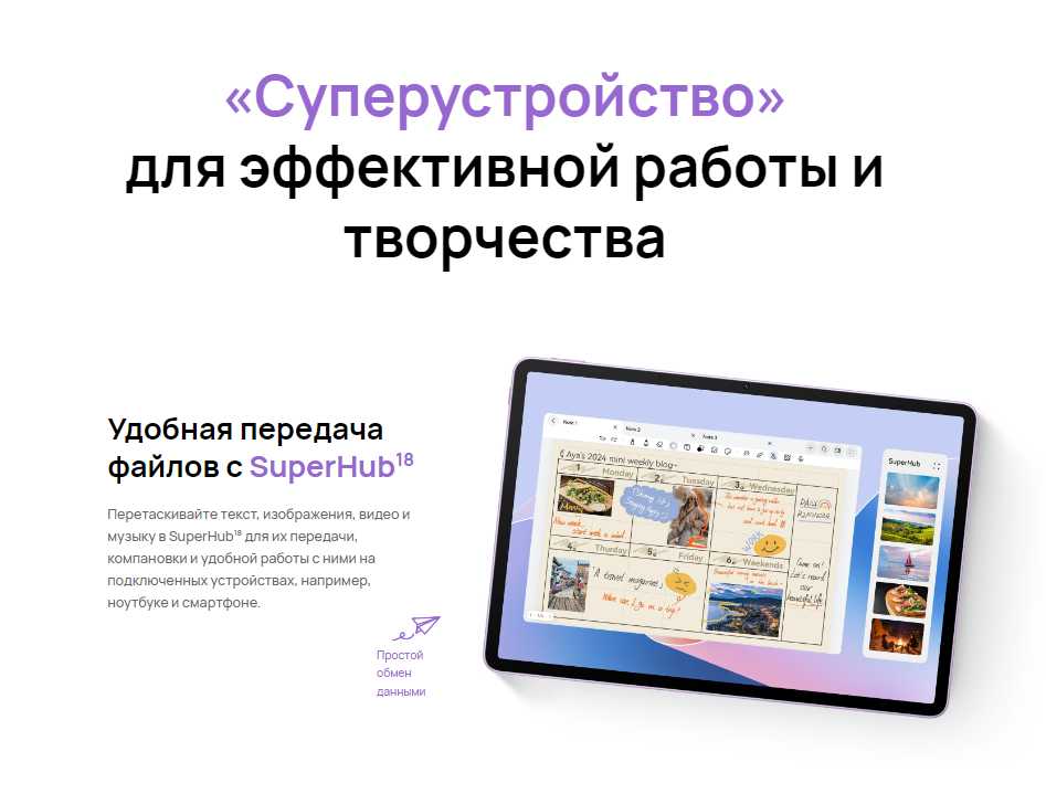 Удобный дизайн: MatePad имеет стильный и компактный дизайн, который удобно лежит в руке. Я могу легко брать его с собой в поездки или использовать дома на диване.