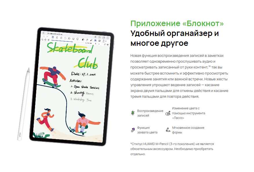 - Интеграция со стилусом M-Pencil: