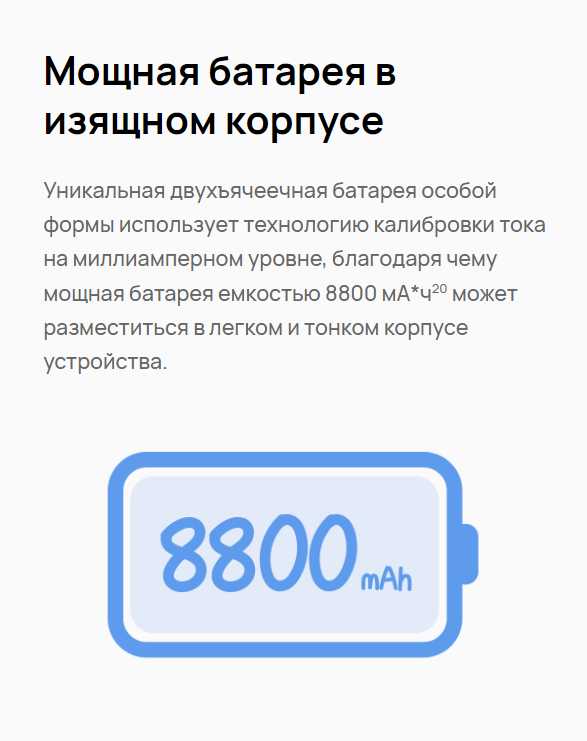 При непрерывном серфинге, просмотре 4K-видео и работе с документами планшет работает 7-8 часов. В режиме чтения с минимальной яркостью автономность увеличивается до 12 часов. Зарядка восстанавливает 100% за 50-60 минут благодаря поддержке быстрой зарядки 40 Вт. -