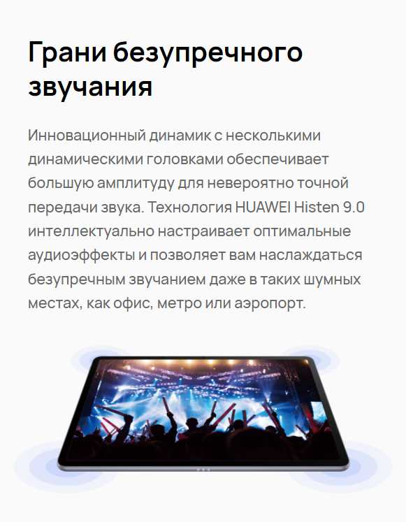 - Алгоритмы Huawei Histen 7.0 автоматически оптимизируют звучание под тип контента.