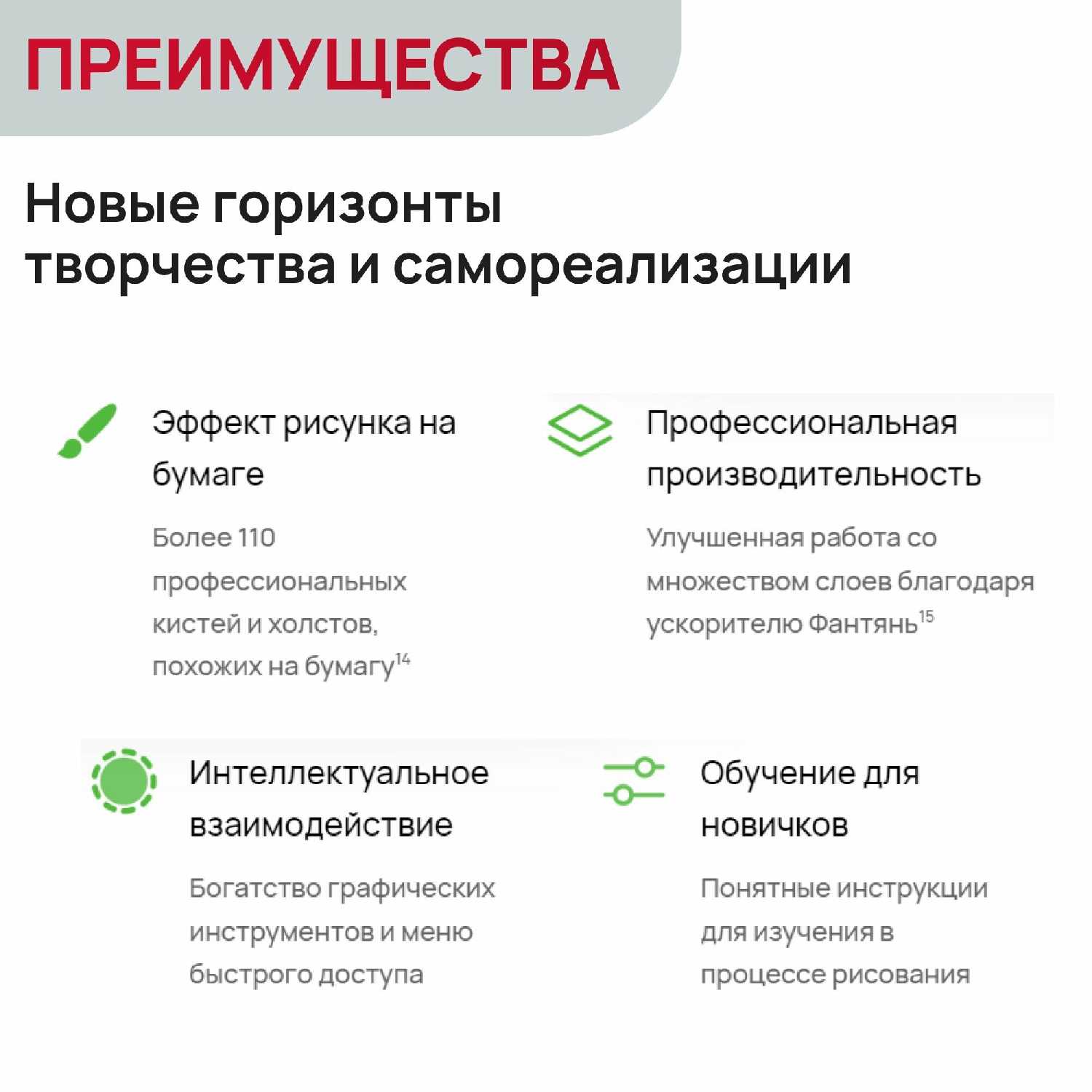 - Палм-режекшн исключает случайные касания ладонью при рисовании.