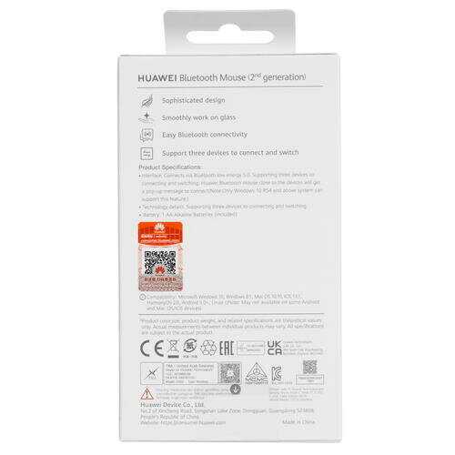 При совместном использовании с ноутбуками или планшетами Huawei (например, MateBook D16, P30 Pro) сопряжение происходит за 2–3 секунды без драйверов. Система Huawei PC Manager автоматически отображает заряд батареи и серийный номер мыши. -