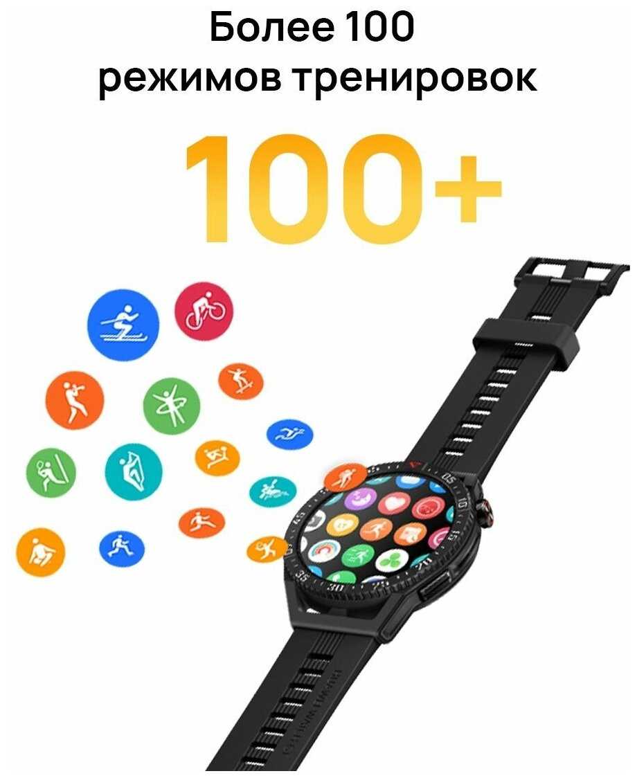 Предусмотрено свыше 100 профессиональных режимов (бег, йога, велосипед, хайкинг и др.). Во время занятий часы дают персонализированные подсказки по нагрузке и восстановлению, фиксируют пульс, расход калорий и маршрут (с GPS). Можно создавать индивидуальные программы, а статистика синхронизируется с приложением Huawei Health для анализа прогресса. -