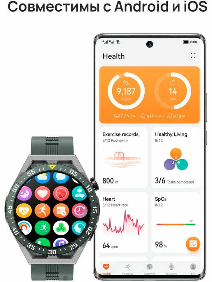 - Встроенный GPS точно фиксирует маршруты, данные синхронизируются с приложением Huawei Health для анализа прогресса.