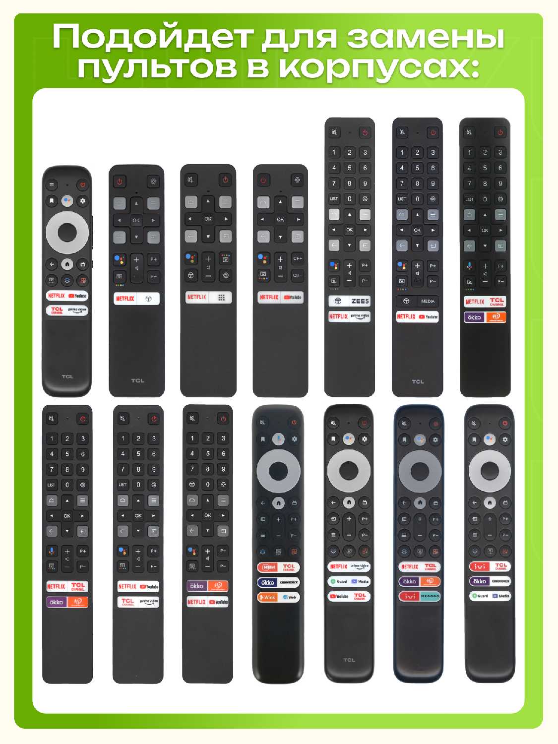 Производитель совместимых устройств : | Aceline, Akai, BAFF, BBK, BQ, Blackton, Crown, DEXP, Digma, ECON, Erisson, HARPER, HARTENS, HIBERG, Hi, Hyundai, Irbis, JVC, KIVI, LG, MANYA, NATIONAL, Novex, Olto, Orfey, Prestigio, RAZZ, Ruimatech, SBER, STARWIND, STRAUS, SUPRA, Skyline, Sunwind, TCL, Telefunken, Thomson, Toshiba, VEKTA, Yasin, iFFALCON, Витязь |