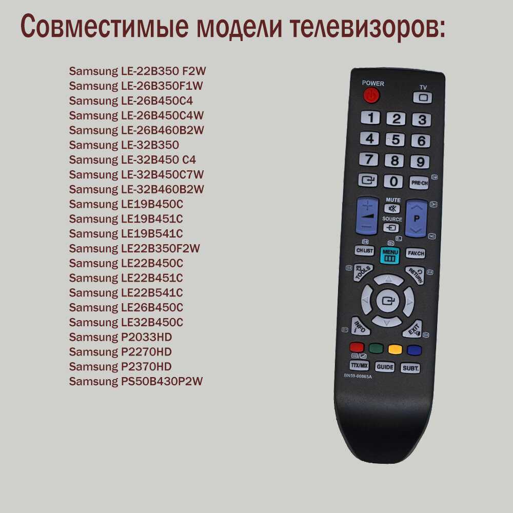 - Полная совместимость с оригинальными моделями Samsung TV: