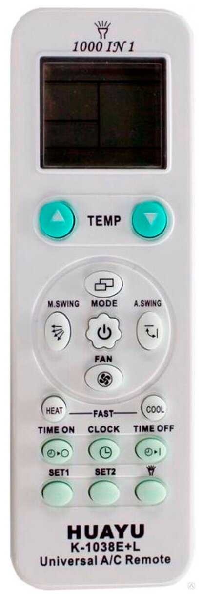 Отличный пульт для техники. Подходит к кондиционерам, настраивать не нужно. Просто купил батарейки и пульт работает с любым кондиционером. Отлично!
