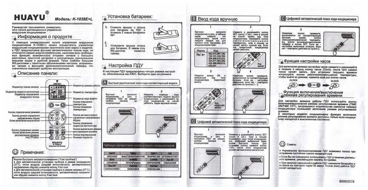 11 отзывов пользователей o Huayu K-1038E+L для кондиционера