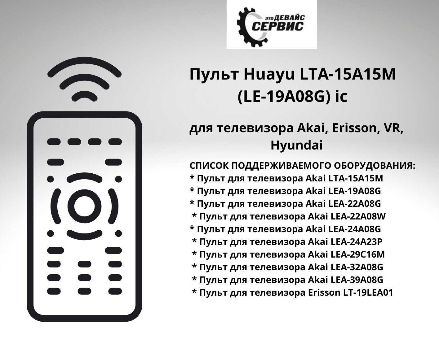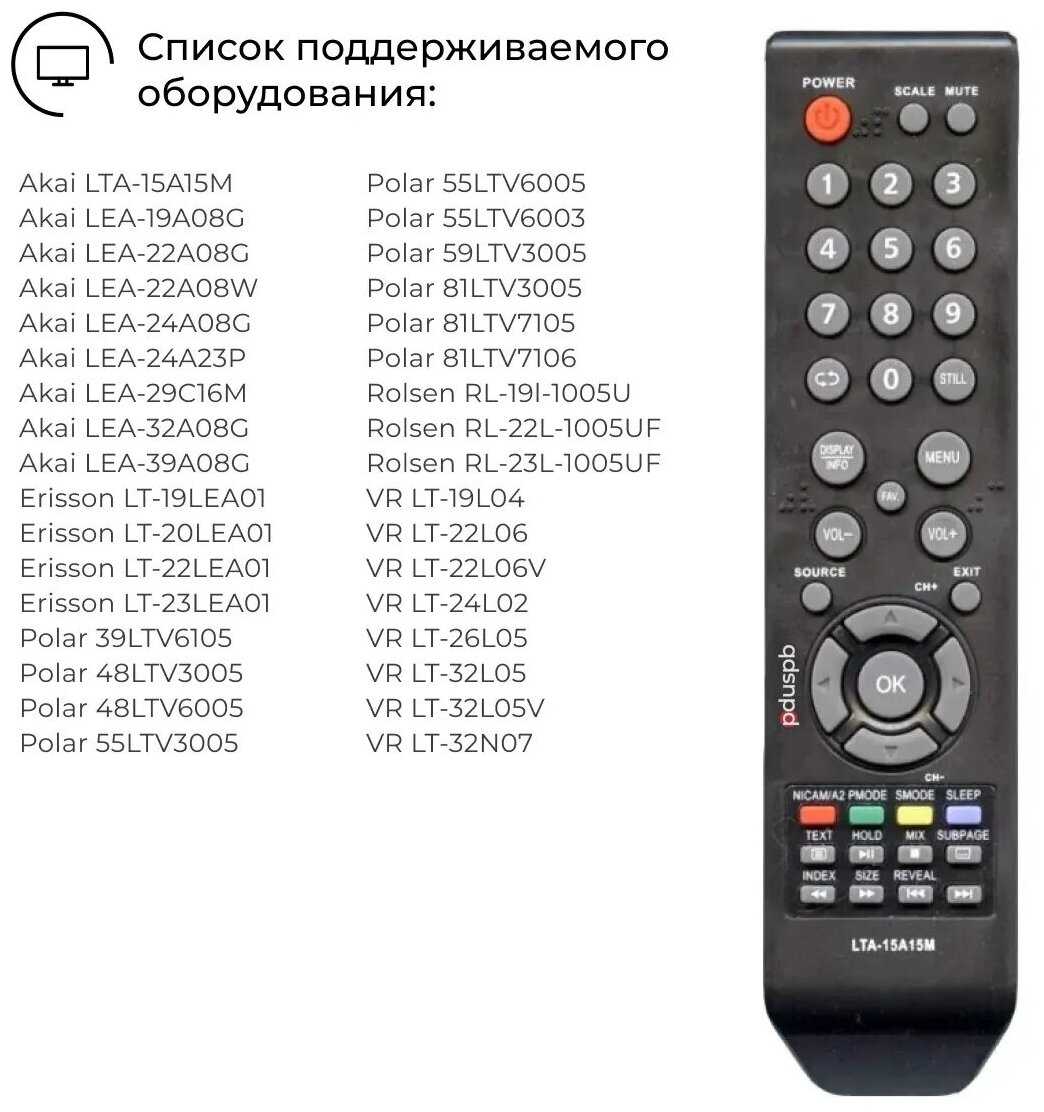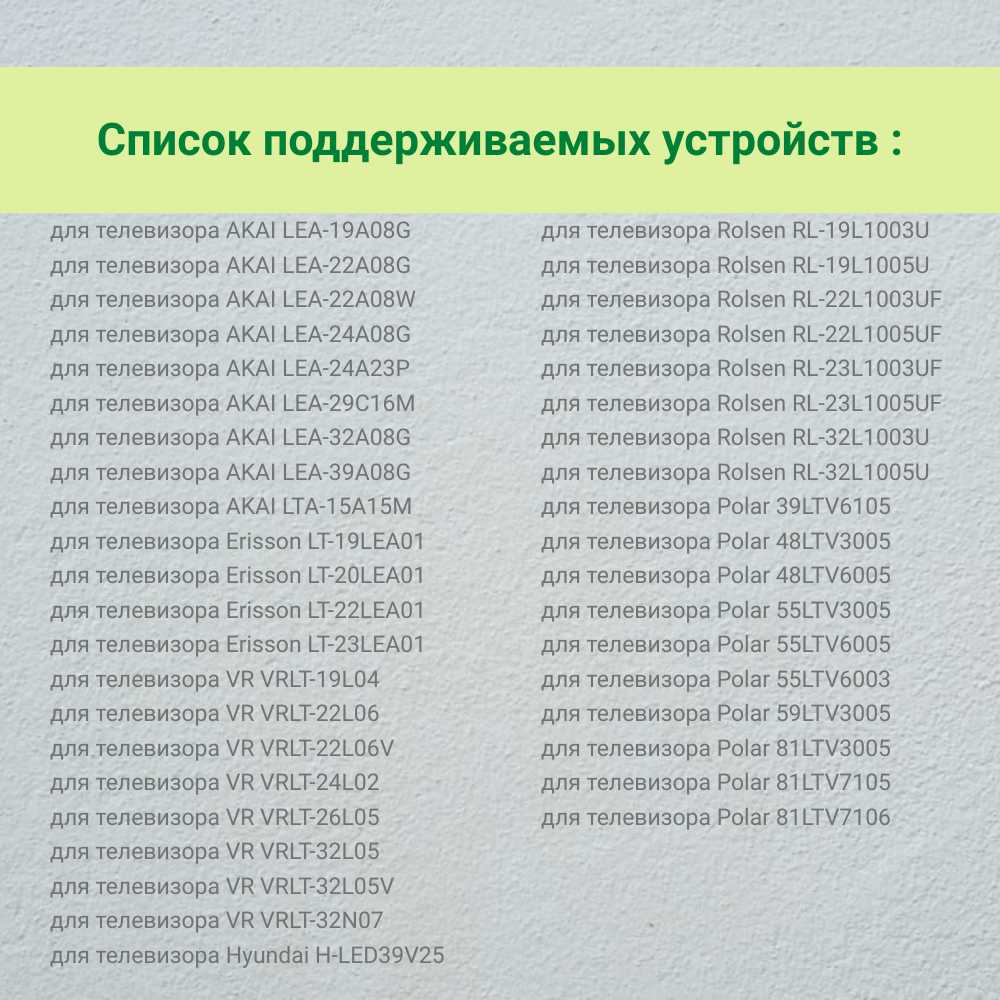 Производитель совместимых устройств : | Erisson, Akai, VR, Rolsen, Hyundai, Polar |